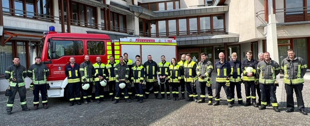 VG Bad Ems-Nassau | 24. April 2022 | (ww). Mit einer Lernerfolgskontrolle in Verbindung mit einer praktischen Abschlussübung konnten 16 Feuerwehrkameraden/-innen aus der Verbandsgemeinde Bad Ems-Nassau den Grundlehrgang erfolgreich abschließen. Vorausgegangen waren drei Wochenenden an denen die Teilnehmer die Grundfertigkeiten des Feuerwehrwesens erlernten. Auch zeigte sich den angehenden Floriansjüngern, dass der Feuerwehrdienst eine Teamleistung ist.