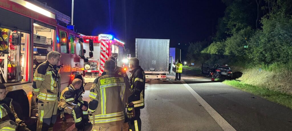 A3/ Windhagen | 4. Juni 2025 | (ww). Gestern Abend kam kam es auf der Autobahn A3 in Höhe der Ortschaft Windhagen zu einem schweren Verkehrsunfall. Der 55-jährige Fahrer eines Kleintransporters verstarb noch an der Einsatzstelle. Aufgrund der nächtlichen Sperrung der Autobahn A3 ab der Anschlussstelle Bad Honnef in Fahrtrichtung Köln, kam es zu einem Rückstau. Gegen 22:30 Uhr fuhr ein Kleintransporter zunächst auf ein Auto und dann auf einen LKW am Stauende auf. Der Fahrer wurde durch Ersthelfer und dann auch die ersten Rettungskräfte sofort reanimiert, verstarb jedoch noch an der Unfallstelle. Die weiteren Betroffenen des Unfalls blieben unverletzt. Da zunächst unklar war wie viele Personen betroffen sind, wurden mehrere Rettungswagen sowie ein Notarzt an die Einsatzstelle entsendet. Die Feuerwehr wurde nachalarmiert, um die Unfallstelle abzusichern und auszuleuchten. Nachdem die Autobahn in Richtung Köln zunächst voll gesperrt wurde, konnte nach rund einer Stunde die linke Fahrspur wieder freigegeben werden. Zur Unfallaufnahme wurde ein Gutachter beauftragt. Quelle: Feuerwehr VG Asbach /Fotos: Tom Frey