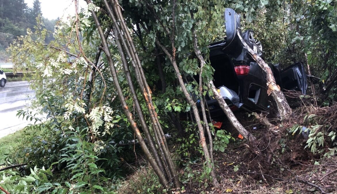 Noch während die Bergungs- und Aufräumarbeiten liefen kam es rund eine halbe Stunde später Kurze Zeit später nur sechs Kilometer weiter zu einem weiteren Unfall. Auch hier geriet der Unfallverursacher ebenfalls aufgrund nicht angepasster Geschwindigkeit und mangelhafter Bereifung bei regennasser Fahrbahn ins Schleudern und nach rechts von der Fahrbahn ab. Lediglich das Geländer einer Brücke verhinderte, dass das Fahrzeug weiter den Hang herab stürzte.