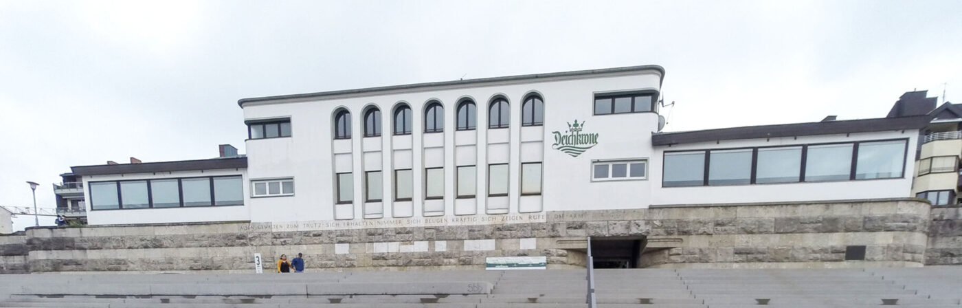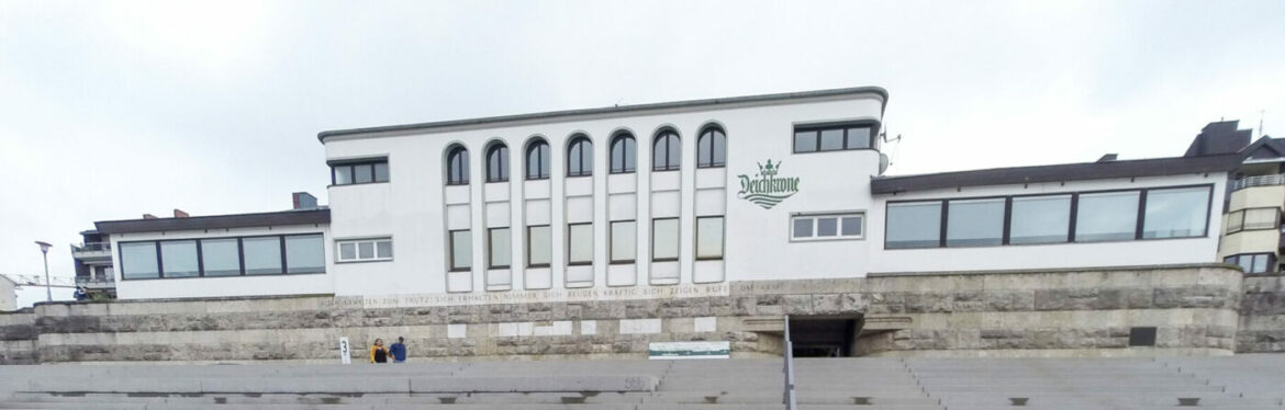 Neuwied | 26.04.2022 | (cm). Die Brüstung der Deichmauer soll wieder in Schuss gebracht werden. Die Arbeiten haben auch Auswirkungen auf das Deichkrone-Gebäude, wie die Stadt Neuwied mitteilt. Konkret sollen die beiden maroden Seitenflügel im Zuge der Sanierungsmaßnahmen ab Anfang Mai abgerissen werden. Und auch die zur Stadt hin gelegene, baufällige und seit Jahren gesperrten Umgehung („Balkon“) der Deichkrone fällt dem Abrissbagger zum Opfer. Der Denkmalschutz messe den Seitenflügeln keinen historischen Zeugniswert zu, erklärt Nina Porz, Leiterin des Stadtbauamts, die Entscheidung. Mit den Sanierungsarbeiten wird die Stadt gleichzeitig ihr neues Beleuchtungssystem umsetzen. Künftig sollen dann Deichmauerweg, Deichuferpromenade und Deichmauer ausgeleuchtet und angestrahlt werden.