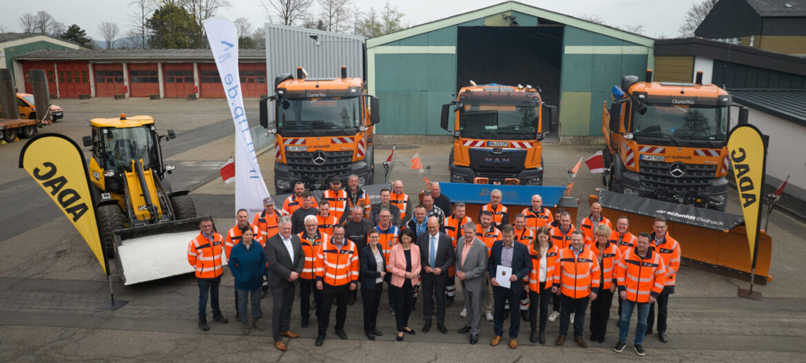 Am Freitag, 22. März 2022 dankten Rudi Speich und Daniela Schmitt, Ministerin für Wirtschaft, Verkehr, Landwirtschaft und Weinbau Rheinland-Pfalz, dem Team der Straßenmeisterei Koblenz stellvertretend für alle Meistereien im Land für den hohen persönlichen Einsatz, den sie während des gesamten Jahres auf den Straßen in Rheinland-Pfalz für die Verkehrssicherheit erbringen. „Als Verkehrsministerin von Rheinland-Pfalz bin ich sehr dankbar für den unermüdlichen Einsatz und Leistung unserer Straßenwärter, die täglich für einen reibungslosen Verkehrsfluss und vor allem für die Sicherheit unserer Straßen sorgen“, sagte Schmitt. „Ihre Fachkenntnisse und Expertise machen unsere Straßen zu einem sicheren Ort für alle Verkehrsteilnehmer und dies verdient höchste Anerkennung.“