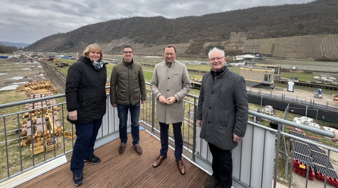 Lehmen | 9. März 2025 | (Michaela Cetto). Die Moselschleuse führte den Koblenzer CDU-Bundestagsabgeordneten Josef Oster jüngst nach Lehmen, wo er gemeinsam mit einer Delegation des CDU-Ortsverbandes rund um Christoph Stoffel und Annette Breitkreutz das Bauwerk unter die Lupe nahm. Seit 2003 (!) ist der Ausbau in Lehmen mit einer zweiten Schleusenkammer geplant, um den Schiffsverkehr effizienter zu gestalten und Engpässe zu vermeiden. Mit rund sieben Jahren Bauzeit wird laut Experten jetzt gerechnet. „Leider ist hier sehr lange viel zu wenig passiert“, so Oster. Dass das Projekt über Jahre brach lag, hatte mehrere Gründe, unter anderem die Insolvenz der beauftragten Baufirma und Veränderungen im Standard der Schleusenbauweise, so dass die Planungen darauf angepasst werden mussten. „Außerdem priorisierte das zuständige Ministerium wegen klammer Kassen andere wichtige verkehrsinfrastrukturelle Maßnahmen“, erklärte der Abgeordnete. „Dabei hat der Frachterunfall in Müden vom vergangenen Dezember eindrücklich gezeigt, wie schnell der Schiffsverkehr an der Mosel lahmgelegt ist – mit gravierenden Folgen für die Wirtschaft.“ Da mehrere Moselschleusen sanierungsbedürftig sind, steige die Sorge vor Zwischenfällen, die den Gütertransport ausbremsen könnten. „Umso wichtiger ist es, dass die Arbeiten in Lehmen und an den anderen Schleusen jetzt möglichst bald wieder Fahrt aufnehmen“, sagte Oster. „Schnellere Umsetzungen solcher Bauvorhaben müssen Standard werden.“ Der Abgeordnete versprach, sich im Rahmen seiner Möglichkeiten dafür einzusetzen.