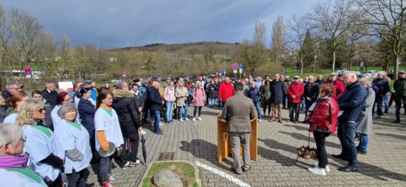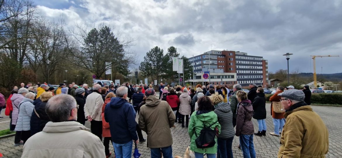 Bad Ems | 25. März 2023 | (ww). Zu einer Demonstration gegen die nun bevorstehende Schließung des Akutkrankenhauses Paracelsusklinik in Bad Ems hatten Gisela Bertram, Beigeordnete des Rhein- Lahn- Kreises;  Uwe Bruchhäuser, Bürgermeister der Verbandsgemeinde Bad Ems-Nassau und Oliver Krügel, Stadtbürgermeister von Bad Ems für heute Mittag um 13 Uhr auf den städtischen Parkplatz an der Klinik aufgerufen.