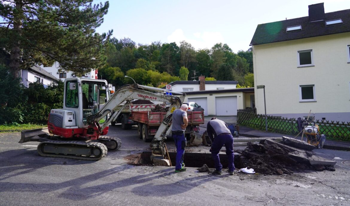 Bad Ems | 21. Oktober 2023 | (ww). Im Bereich Grabenstraße Westersbachweg/ Schlesierweg/ Pommernweg/ Untertalen in Bad Ems wurde heute Morgen ein Wasserrohbruch festgestellt. Im Wasserbehälter Westersbach war eine Veränderung des Füllstandes aufgefallen – Messungen zeigten an, dass ein Rohrbruch im Bereich der Kreuzung Untertalen / Grabenstraße vorlag. Die Haushalte im betroffenen Bereich wurden an der Haustüre und mit Durchsage informiert. Mitarbeiter der Verbandsgemeindewerke und eines Vertragsunternehmens sind vor Ort und aktuell mit der Schadensbeseitigung befasst. Kurz vor 15 Uhr wurde ein Riss in einem Versorgungsrohr im Kreuzungsbereich entdeckt und mit einer Manschette verschlossen. Nach der Spülung des Rohrnetzes ist die Wasserversorgung wahrscheinlich zeitnah wieder hergestellt.