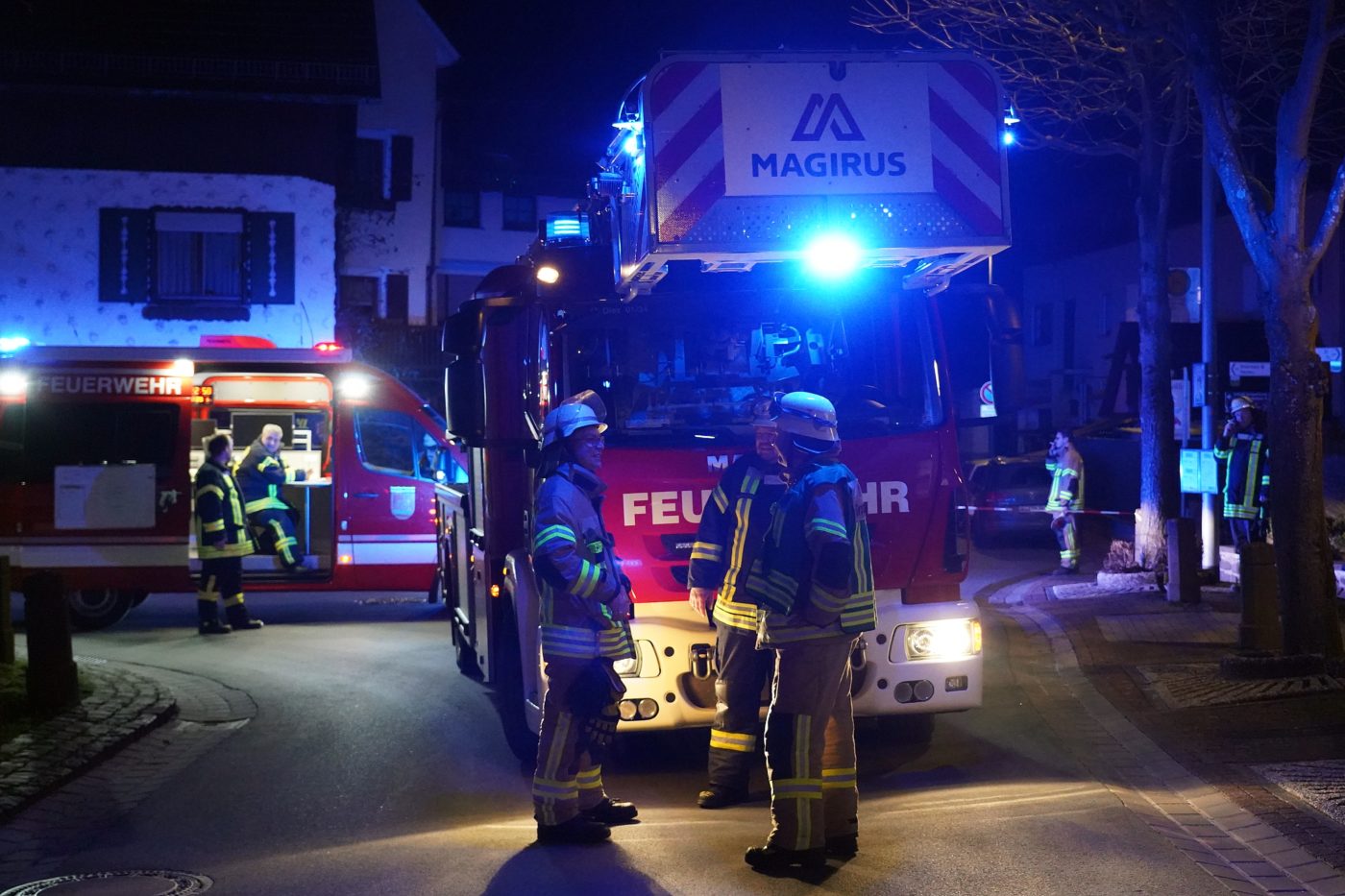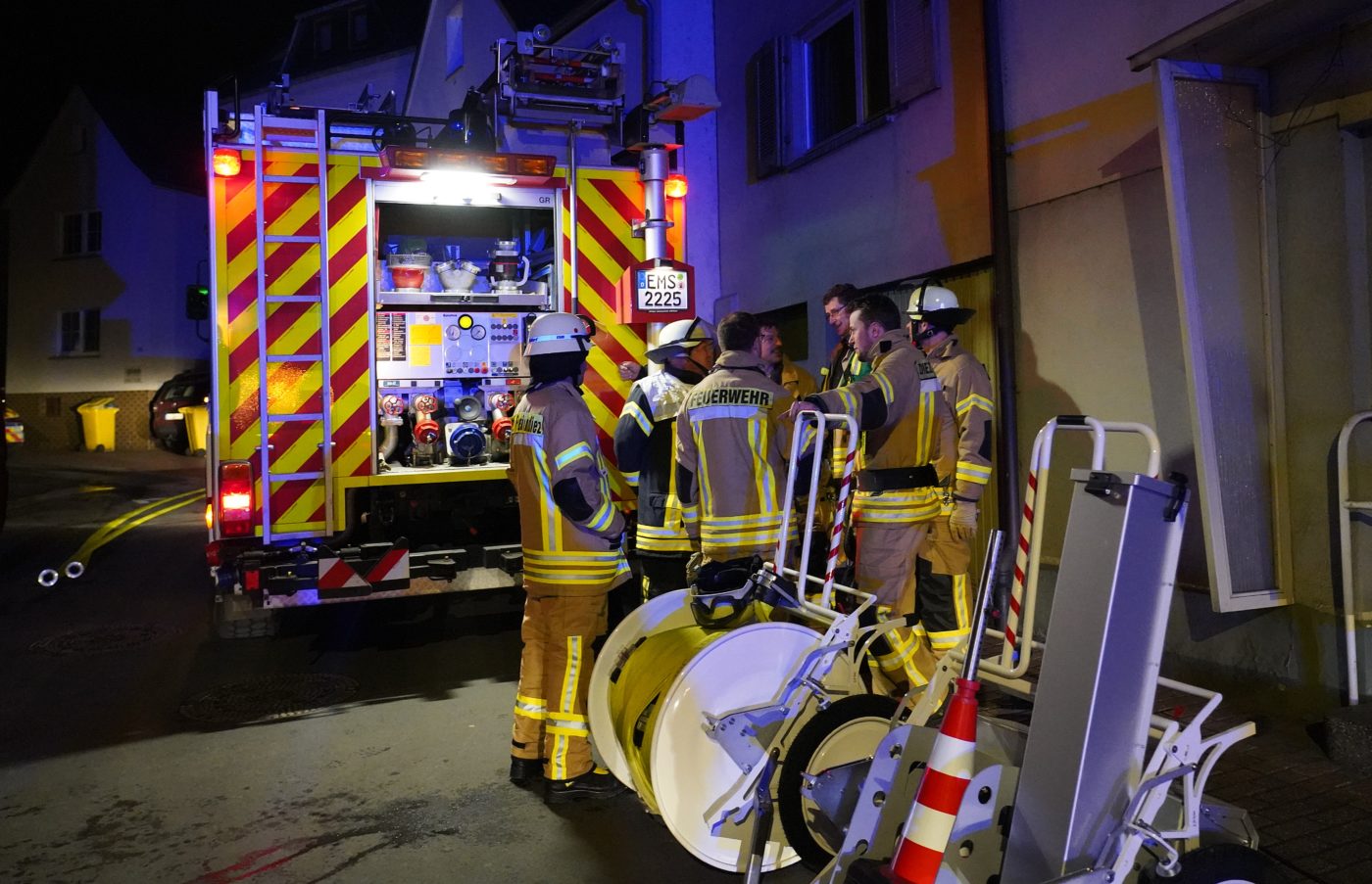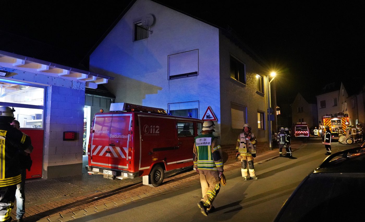 Die Meldung, dass eine Menschenrettung erforderlich sei, bestätigte sich glücklicherweise ebensowenig wie der gemeldete Vollbrand. Das meldeten die ersteintreffenden Einsatzkräfte an die mitalarmierten Kameraden, so dass von den zunächst rund 45 Einsatzkräften, knapp 20 schon während der Anfahrt wieder in die Gerätehäuser zurückkehren konnten.  Durch das beherzte Eingreifen der Nachbarn war eine Bewohnerin bereits aus dem Einfamilienhaus gerettet und der Brand weitestgehend gelöscht. „In der Küche kam es aus unbekannten Gründen zu einem Brandausbruch, die Nachlöscharbeiten wurden durch die Kameraden der Einheit Balduinstein und Cramberg mittels Kleinlöschgerät durchgeführt“, schreibt die Feuerwehr im Einsatzbericht. Das Kleinlöschgerät wird im Volksmund auch Kübelspritze genannt, laut Auskunft von Sebastian Kuhmann, Einsatzleiter vor Ort war angebranntes Essen nicht der Grund für den Alarm. Die Einheit Balduinstein hatte übrigens die denbar kürzeste Entfernung zum Einsatzort: das Brandobjekt war das Nachbarhaus des Gerätehauses.