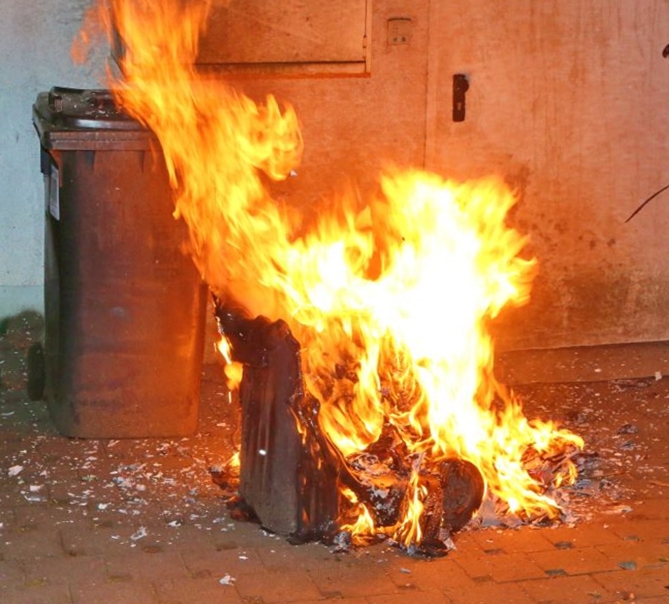 Symbolfoto: brennende Mülltonne