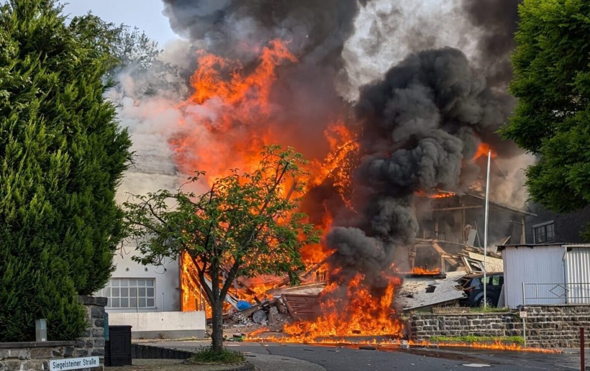 Bretthausen | 31. Mai 2025 | (ww). Heute Morgen gegen 7 Uhr wurde die Polizei Westerburg über eine Hausexplosion in der Brunnenstraße in Bretthausen informiert. Beim Eintreffen der ersten Einsatzkräfte stand das Wohngebäude samt Werkstatt in Vollbrand. Durch die Feuerwehreinheiten aus der Verbandsgemeinde Rennerod konnte ein Übergreifen der Flammen auf Nachbargebäude verhindert werden, dennoch wurden einige Häuser durch umherfliegende Teile beschädigt. Verletzt wurde nach dem derzeitigen Stand niemand, es entstand hoher Sachschaden im sechsstelligen Eurobereich. Die Löscharbeiten sind mittlerweile (12 Uhr) abgeschlossen. Insgesamt waren die Polizei Westerburg, Hachenburg und Montabaur, sowie mehrere Kräfte des DRK einschließlich Rettungshubschrauber und ein Großaufgebot der Feuerwehr der VG Rennerod samt Unterstützung der Feuerwehren aus Ransbach-Baumbach, Bad Marienberg und Höhn sowie mehrere Einheiten des THW im Einsatz. Ermittlungen zur Brandursache dauern an.
