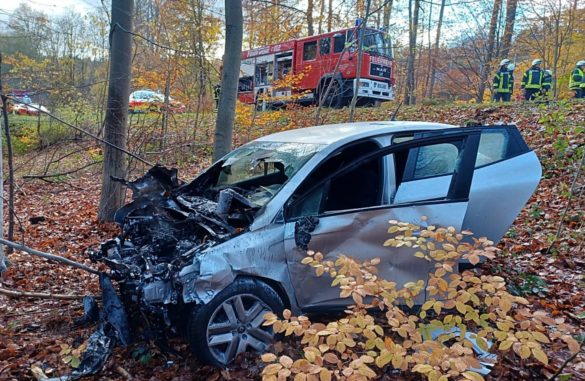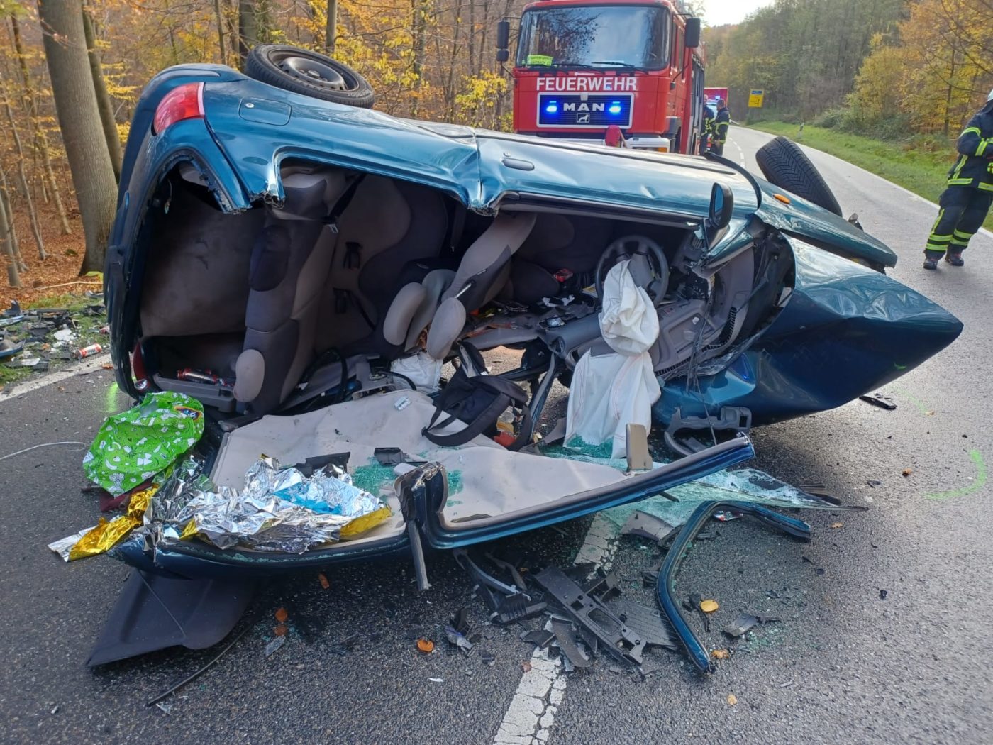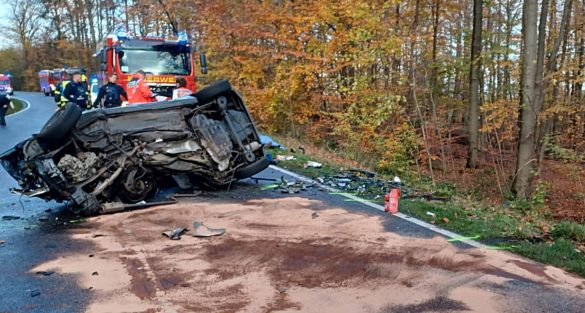 Nach dem derzeitigen Stand der Ermittlungen befuhr ein 22-Jähriger die L 266 in Richtung Dierdorf. Eine 47-Jährige war mit ihrem Fahrzeug in der Gegenrichtung unterwegs. In einer Rechtskurve geriet der 22-Jährige aus bisher noch ungeklärter Ursache auf den unbefestigten Seitenstreifen und schleuderte schließlich in den Gegenverkehr. Er kollidierte frontal mit dem Fahrzeug der 47-Jährigen, das nach rechts in den Wald abgewiesen wurde und sofort in Brand geriet. Die Frau konnte ihr Auto selbstständig verlassen und wurde an der Unfallstelle durch Ersthelfer versorgt. Sie erlitt durch den Unfall schwere – jedoch nicht lebensbedrohliche – Verletzungen und wird stationär in einem Krankenhaus behandelt. Das Fahrzeug des Unfallverursachers überschlug sich auf der Fahrbahn. Der 22-Jährige verstarb noch an der Unfallstelle.