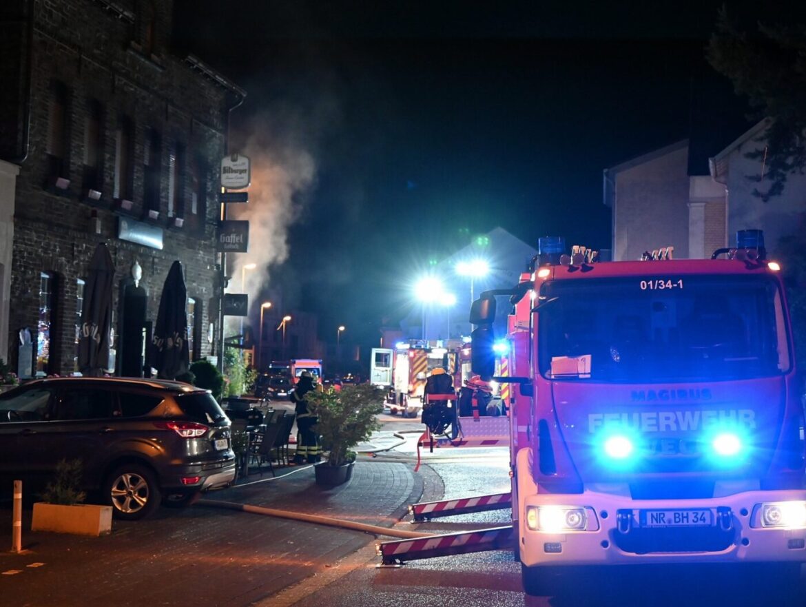 Rheinbrohl. Die Leitstelle Montabaur alarmierte in der Nacht zu Samstag (14.06.2025), gegen 01.50 Uhr die Feuerwehreinheiten Rheinbrohl und Bad Hönningen mit dem Einsatzstichwort „B 3 – Gebäudebrand mit Menschenrettung“ nach Rheinbrohl. Beim Eintreffen der Feuerwehr war eine starke Rauchentwicklung aus einer Gaststätte sichtbar. In den Geschossen über der Gaststätte befinden sich Wohnungen. Drei Personen wurden durch die Feuerwehr, teilweise mit Fluchthauben, aus den Wohnungen gerettet und an den Rettungsdienst übergeben. Weitere Personen hatten das Haus bereits verlassen. Durch mehrere Trupps unter Atemschutz wurden die Wohnungen kontrolliert und das Feuer in der Gaststätte gelöscht. Auch der angrenzende Bereich wurde durch die Feuerwehr kontrolliert und es wurden Lüftungsmaßnahmen vorgenommen. Bürgermeister Jan Ermtraud (VG Bad Hönningen) kümmerte sich gemeinsam mit Ortsbürgermeister Oliver Labonde um die Unterbringung von zwei Personen, die aktuell nicht in ihre Wohnung zurück können. Weitere Personen konnten bei Freunden und Bekannten unterkommen. Im Einsatz waren die Feuerwehreinheiten aus Rheinbrohl und Bad Hönningen, sowie der Rettungsdienst mit zwei Rettungswagen und einem Notarzteinsatzfahrzeug. Die Polizei hat die Ermittlungen zur Brandursache aufgenommen. „Diese zwei unabhängigen Brände in Wohngebäuden mit erfolgreicher Menschenrettung, innerhalb von knapp vier Stunden, zeigen die Bedeutung unserer Feuerwehren nochmal besonders.“, betonen Wehrleiter Michael Scharrenbach und Bürgermeister Jan Ermtraud.