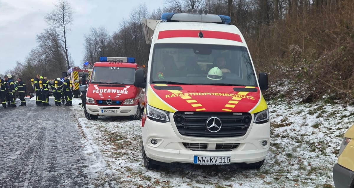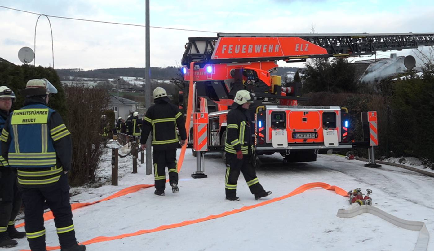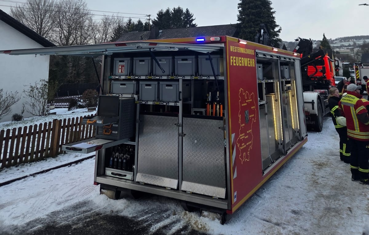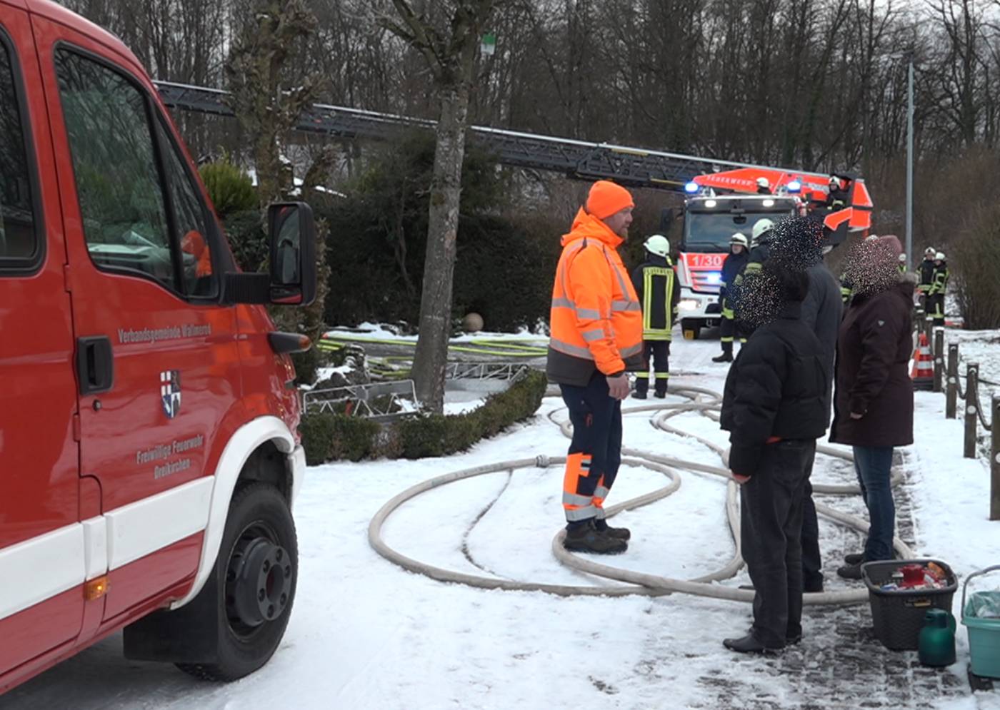 Dreikirchen | 3. Januar 2026 | (ww). In der Ringstraße in Dreikirchen (Verbandsgemeinde Wallmerod / Westerwald) kam es heute gegen 9.30 Uhr zum Vollbrand eines Einfamilienhauses in Holzbauweise. Mehrere Feuerwehreinheiten sowie Rettungs- und Polizeikräfte steuerten bei winterlichen Straßenverhältnissen die Einsatzstelle an. Mitlerweile (11.45 Uhr) ist das Feuer unter Kontrolle, es müssen aber noch aufwändige Nachlöscharbeiten erfolgen. Das Haus ist schwer beschädigt. Zur Ursache, Schadenshöhe und über möglicherweise Verletzte gibt es noch keine Informationen. Es wird nachberichtet.