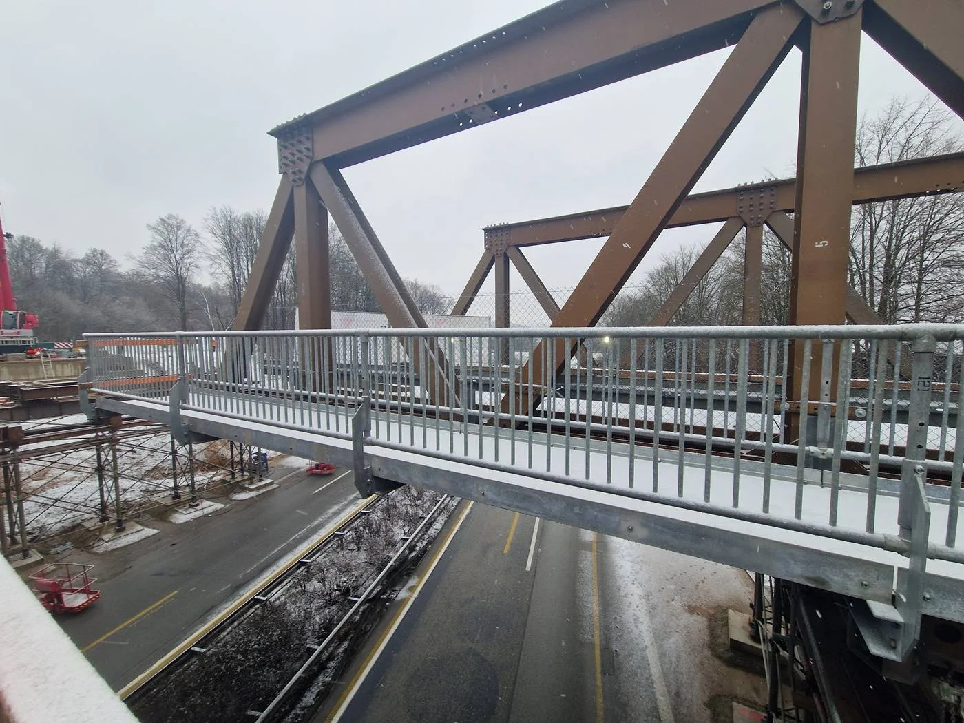 Im Anschluss werden bis Anfang Februar 2026 die Fahrbahnangleichung sowie die Verkehrsanbindung der Behelfsumfahrung hergestellt. Geeignete Witterung und ein planmäßiger Bauablauf vorausgesetzt, soll der erste Bauabschnitt in der zweiten Februarwoche 2026 mit der Inbetriebnahme der Behelfsbrücke abgeschlossen sein. Dort stehen den Verkehrsteilnehmenden zwei verengt geführte Fahrstreifen sowie ein Gehweg zur Verfügung. Eine Geschwindigkeitsbegrenzung auf 30 km/h wird im Bereich der Behelfsbrücke eingerichtet.