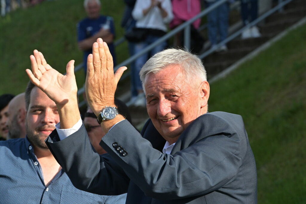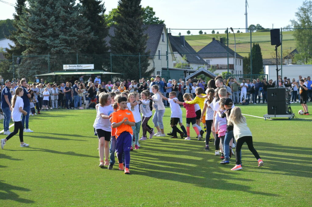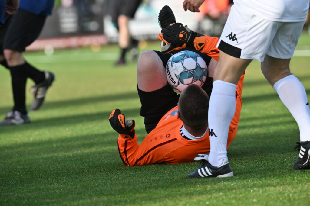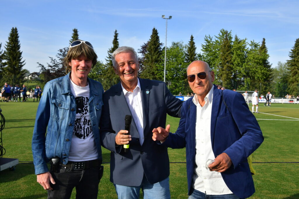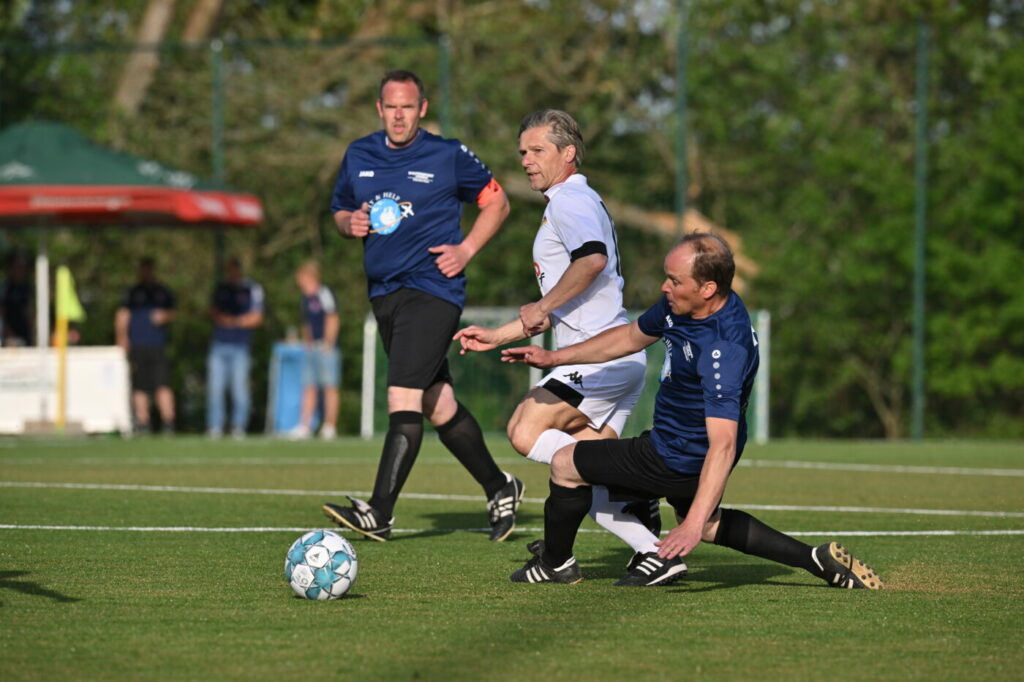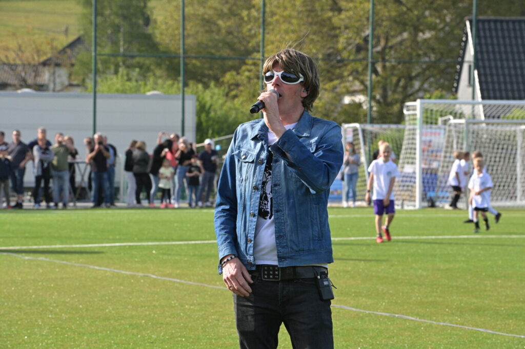 Kroppach | 14. Mai 2022 | (ww). Als die Spendensumme des Benefizspiels der Lotto-Elf gegen eine Ü40-Auswahl des FSV Kroppach bekanntgegeben wurde, ging mehr als ein Raunen durch die Reihen der rund 500 Zuschauer. Der Westerwaldort Kroppach hatte mit 57.000 Euro Geschichte geschrieben, denn noch nie hatte die von Fußball-Europameister Hans-Peter Briegel gecoachte Prominentenmannschaft von Lotto Rheinland-Pfalz eine solch hohe Spendensumme in einer Partie eingespielt. Dass beim 18:2 (8:0)-Sieg der Lotto-Elf auch noch 20 Tore zu sehen waren, krönte den Auftritt in der Reiner-Meutsch-Arena. Damit wäre auch der Impulsgeber dieses Spiels genannt. Reiner Meutsch hat mit seiner Fly & Help-Stiftung weltweit Bildungsprojekte auf den Weg gebracht. „Mit der eingespielten Spendensumme können wir im kommenden Jahr eine weitere Schule im rheinland-pfälzischen Partnerland Ruanda bauen“, frohlockte Meutsch, der sich von der Spendenbereitschaft überwältigt zeigte. „Kinder haben Geld aus ihrer Spardose gespendet“, war der Stiftungsgeber regelrecht angefasst.