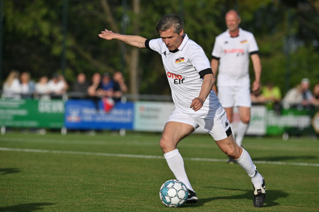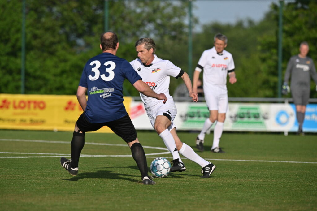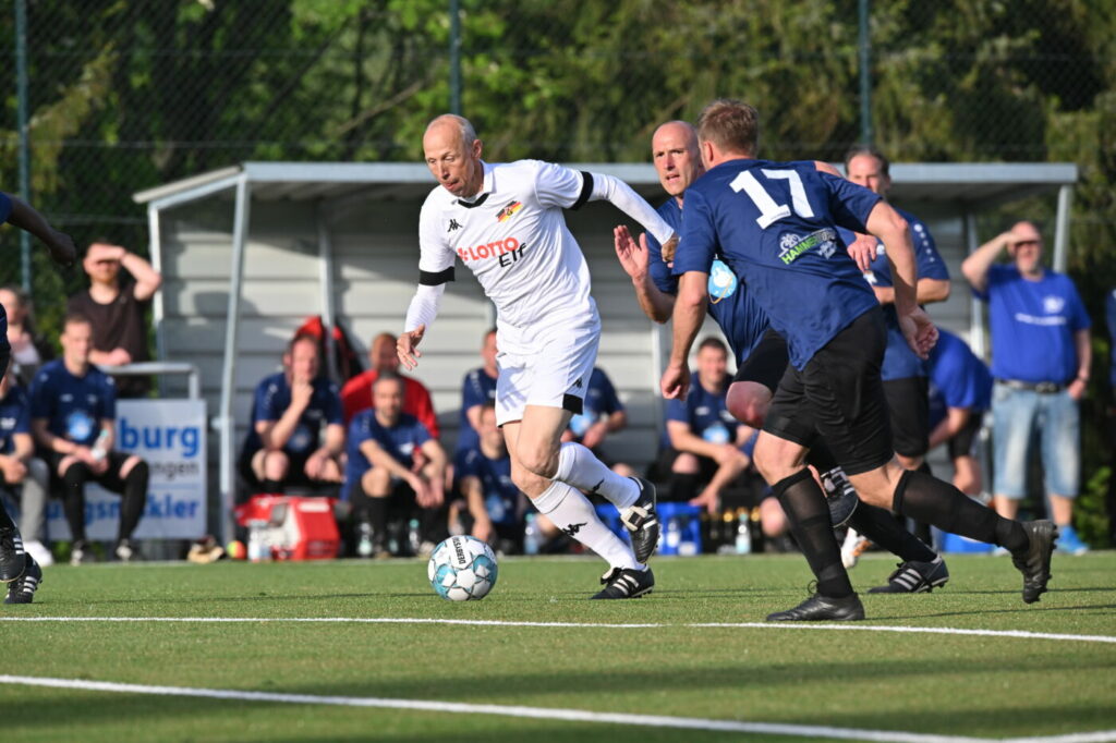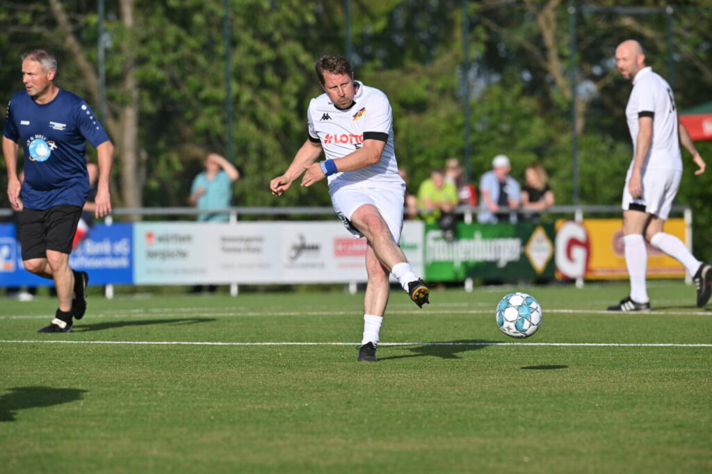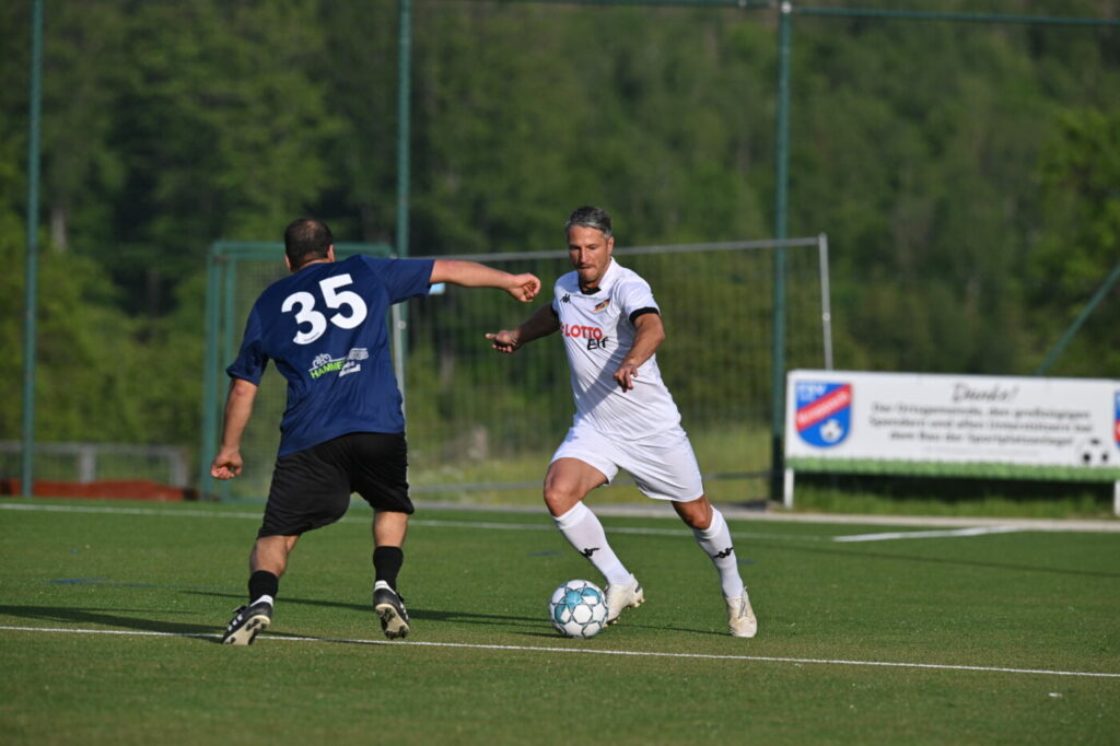 Sportlich brillierte die Lotto-Elf ebenfalls auf hohem Niveau. Mit Matthias Herget, Dariusz Wosz, Andrzej Rudy, Holger Fach, David Odonkor und Wolfgang Kleff waren sechs ehemalige Nationalspieler in Kroppach dabei. Hinzu kam noch die ehemalige Junioren-Nationalspielerin Anne-Kathrin Westphal. Und der Kölner Kultkicker Matthias Scherz zeigte mit insgesamt sieben Treffern wieder einmal seine Torgefährlichkeit. Eine Mischung die passte und vom Spendenergebnis noch einmal getoppt wurde.