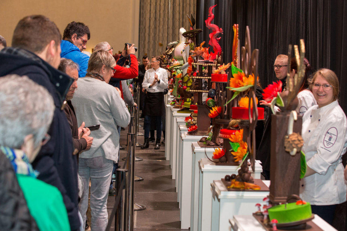 Die imposanten Schokoladenschaustücke der Wettbewerber des „Le Championnat du Chocolat à Coblence“ sind ein wahrlicher Augenschmaus, der die Herzen der Besucher höherschlagen lässt.