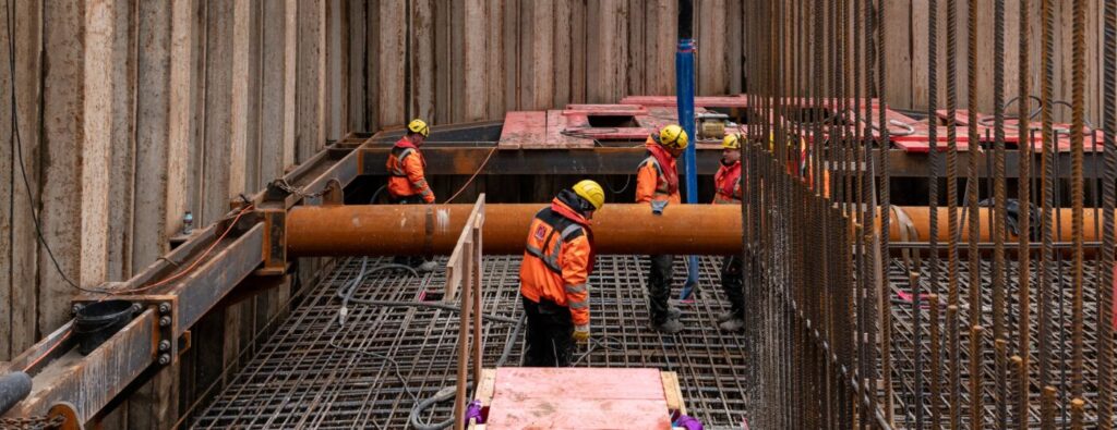 Ein Überblick über die Arbeiten im Spundwandkasten.