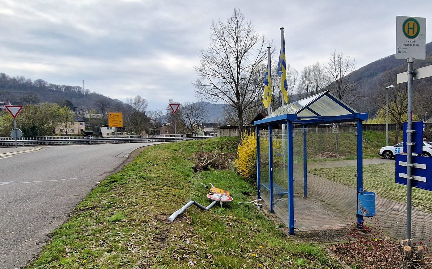 Fachbach | 8. April 2023 | (ww). An der Auffahrt zur Umgehungsstraße kam es am Freitag zu einem Unfall. Ein Fahrer kam hinter der Bushaltestelle von der Fahrbahn ab und auf den abschüssigen Grünstreifen. Bei dem Unfall wurden das Ortsschild und ein Baum umgefahren bzw. komplett zerstört. Verletzt wurde nach Polizeiangaben niemand, der Sachschaden, auch am Fahrzeug, dürfte erheblich sein.