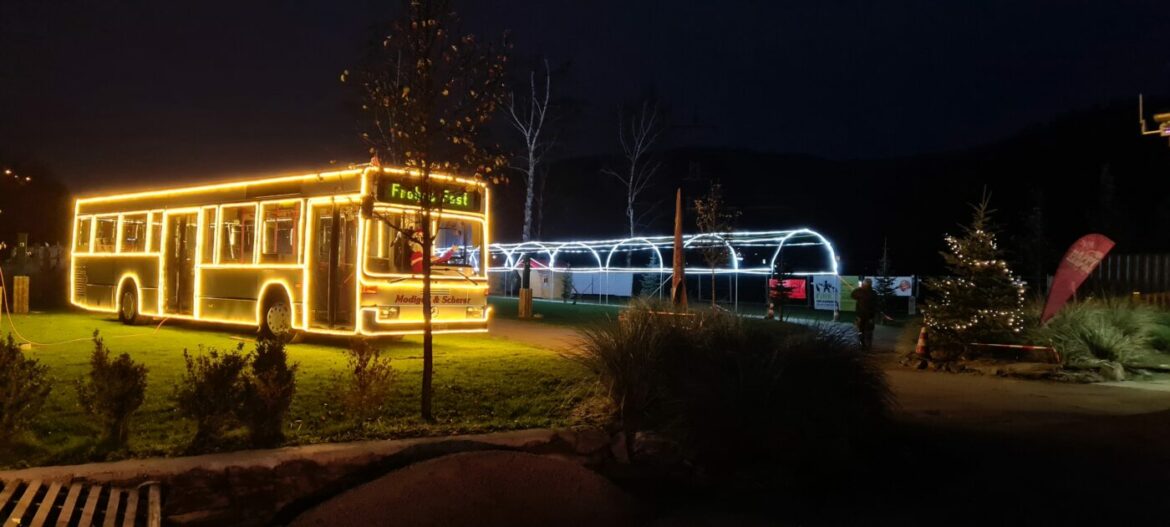 „Wir freuen uns sehr, dass auch diverse Vereine des Ortsrings Fachbach in diesem Jahr am Weihnachtsmarkt teilnehmen und das WinterWunderWeihnachtsla(h)nd 2.0 bereichern, wenn sie sich an verschiedenen Tagen in der sogenannten Vereinshütte präsentieren“, so die Organisatoren Jessica und Oliver Schupp. Noch laufen die Vorausplanungen auf Hochtouren, und man ist optimistisch, dass man ab dem 26.11. dann bis zu 20 Stände mit unterschiedlichsten Angeboten auf dem Platz präsentieren kann. Stand heute haben bereits 15 Teilnehmer zugesagt: Von gebrannten Mandeln, Crépes, Reibekuchen, Glühwein, Lángos, Weihnachtsgebäck, Wurst- und Bierspezialitäten über Geschenkartikel, Schmuck, Bücher bis hin zur Unterhaltung für Kinder mit winterlichen Hüpfburgen wird jede Menge geboten. Und natürlich ist auch der Weihnachtsbus von Modigell & Scherer wieder als Blickfang und Fotomotiv dabei.
