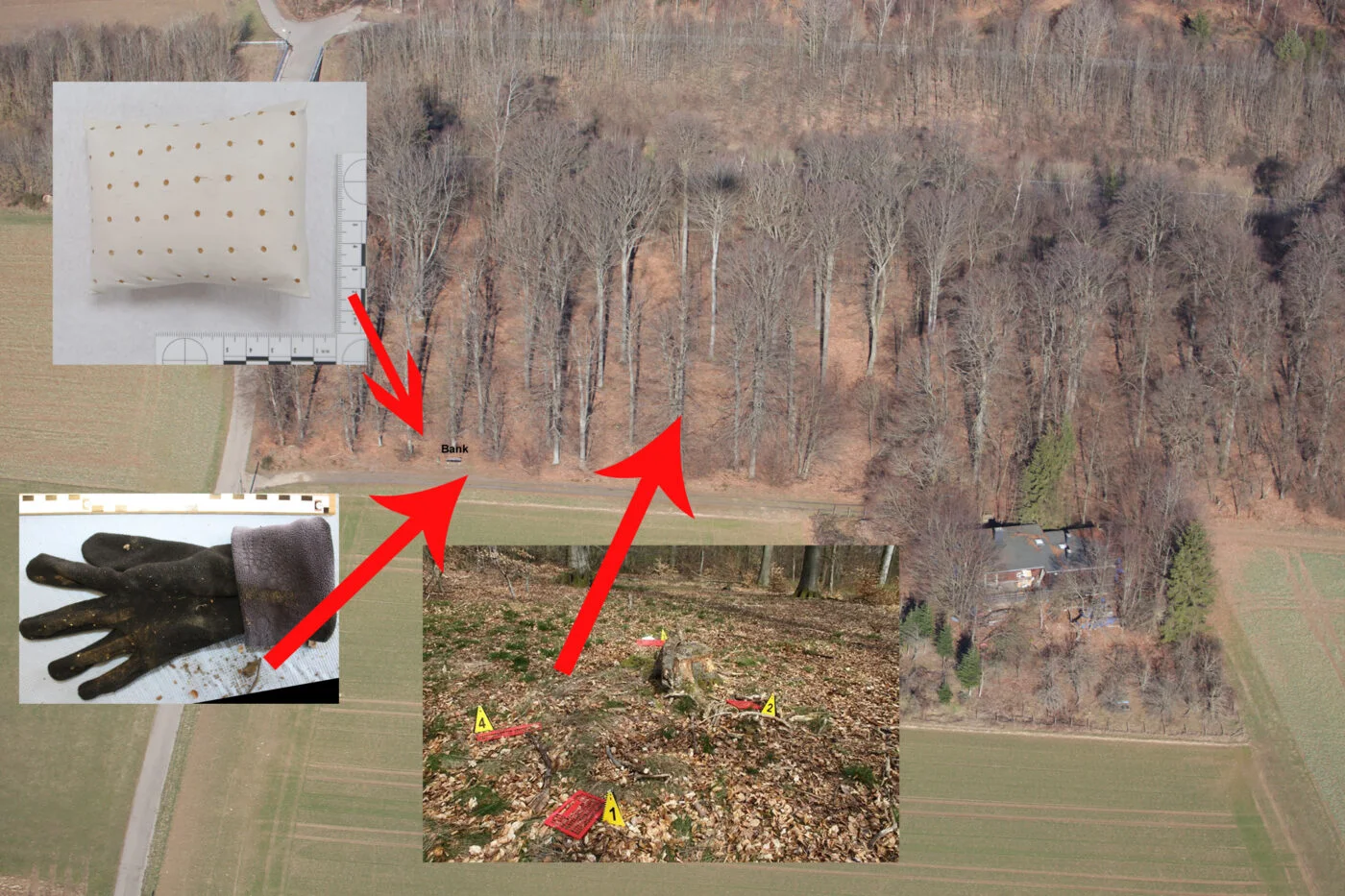 Diese Gegenstände waren bereits bei den Durchsuchungsmaßnahmen Mitte April 2015 aufgefunden worden – allerdings nicht am Leichenfundort, sondern in einem Waldgebiet bei Büchenbeuren, in der Nähe des sogenannten Luisenhäuschens. Die rote Plastikklappbox wurde in ihren Einzelteilen zerlegt an einem Baumstumpf aufgefunden, der Autolederschwamm lag wenige Meter davon entfernt. Der Fleece- Handschuh lag am Waldrand in der Nähe der Sitzbank an der Zufahrt zum Luisenhäuschen. Wer kann Angaben zu diesen Gegenständen machen?