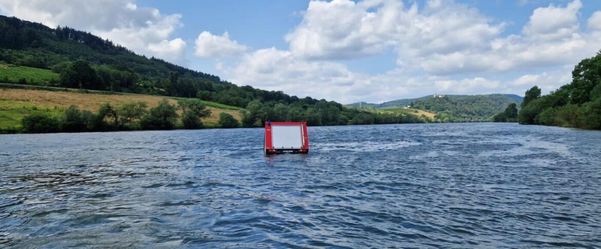 Zell | 16. Juli 2023 | (ww). Aus bislang ungeklärter Ursache ist ein Fahrzeug der Freiwilligen Feuerwehr Zell in die Mosel gerollt, abgetrieben und versunken. Nach Feuerwehr-Angaben passierte das ganze während eines Einsatzes, das Fahrzeug sollte an einer Slip-Anlage ein Feuerwehrboot aus dem Wasser ziehen, dass bei einer Sportveranstaltung zur Absicherung eingesetzt war. Zur Zeit wird nach dem genauen Ort gesucht, an dem das Fahrzeug jetzt liegt. Wo genau die Strömung das Fahrzeug hingetragen hat ist noch nicht bekannt. Wenn es gefunden ist, soll es mit einem Kran geborgen werden. Die Moselschifffahrt ist in dem Bereich zurzeit gesperrt. Ein Feuerwehrmann wurde beim Wegrollen des Fahrzeugs nach ersten Angaben leicht verletzt.