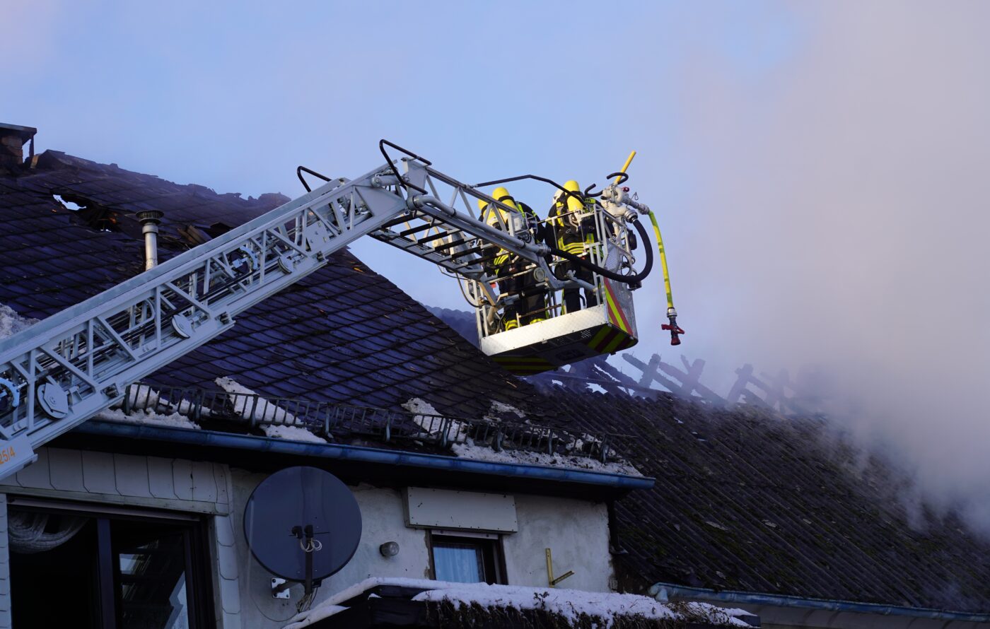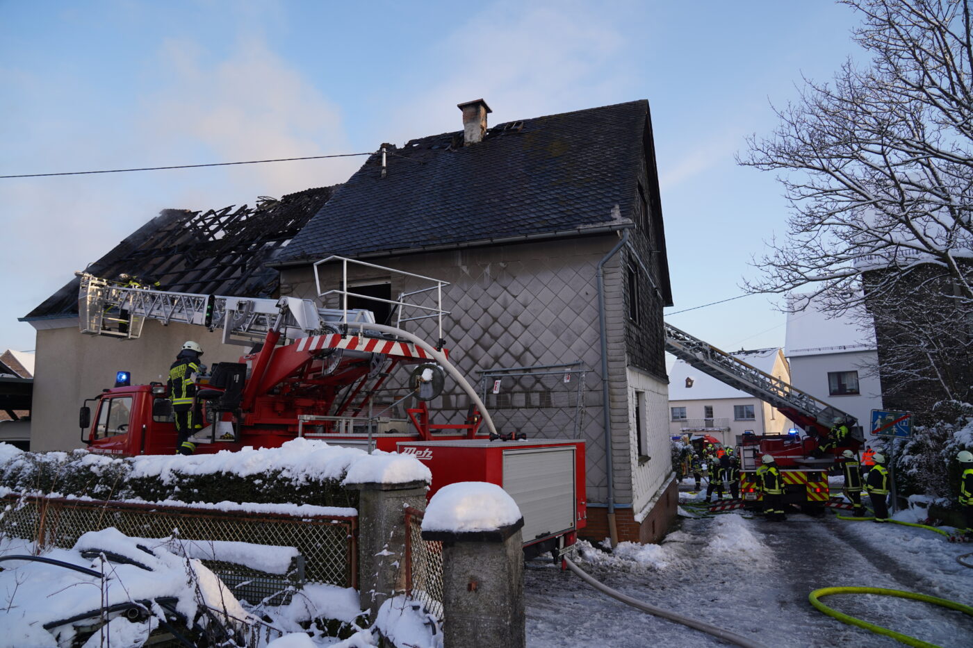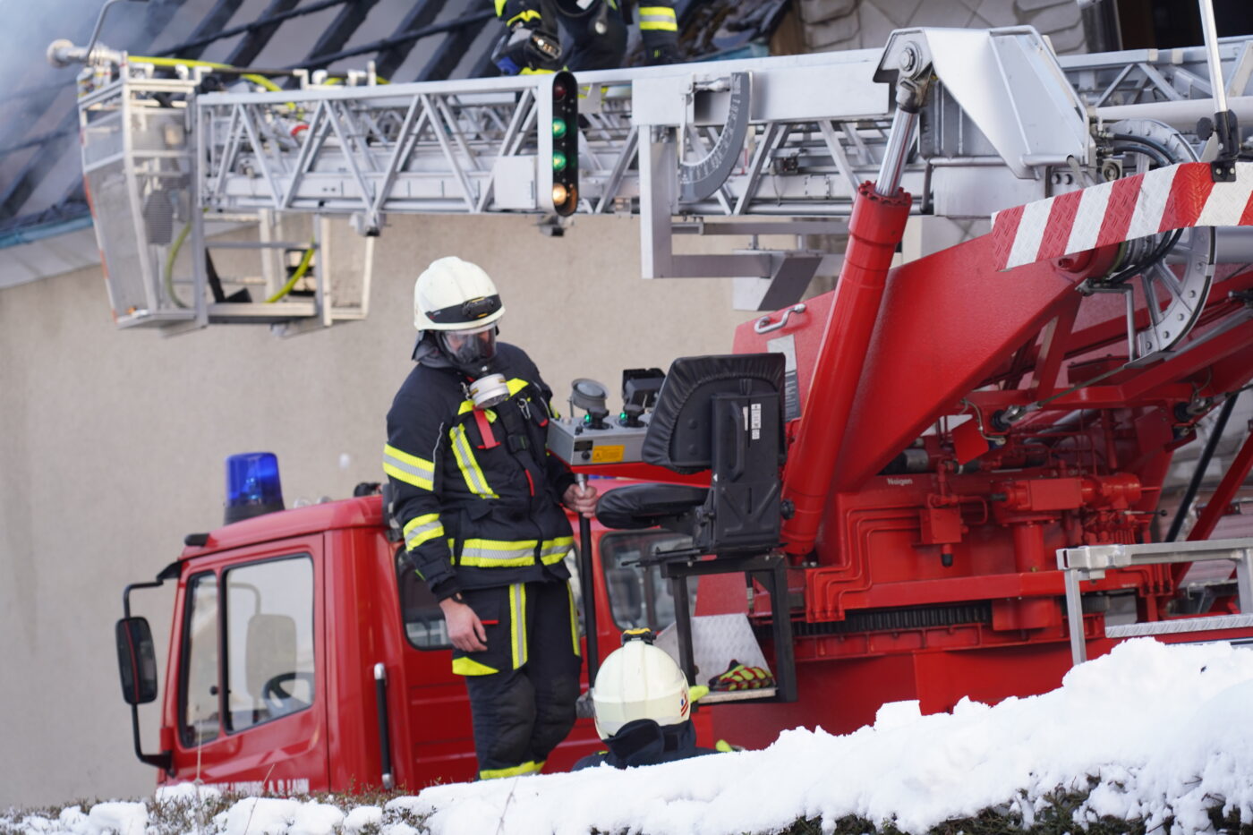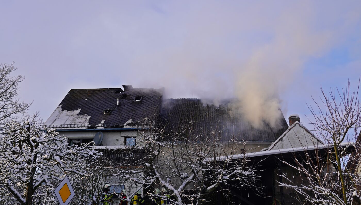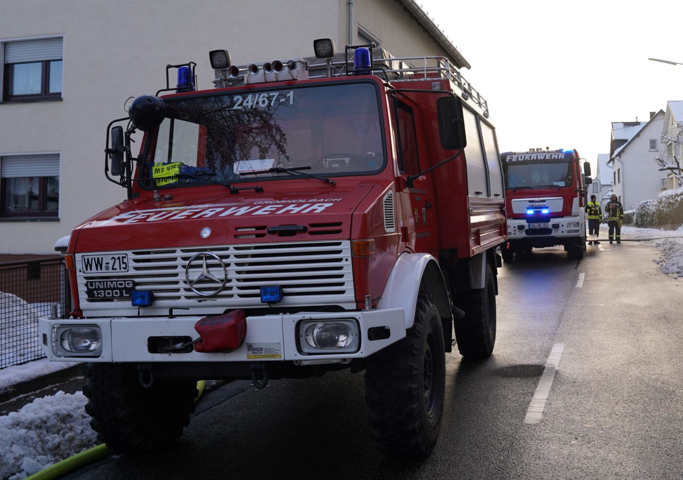Girod | 19. Januar 2024 | (ww). Zum Vollbrand einer Scheune in der Orstmitte von Girod wurden heute Nachmittag gegen 14 Uhr zunächst Teile der Feuerwehr der Verbandsgemeinde Montabaur alarmiert. Bereits auf der Anfahrt stellte sich heraus, dass es sich um einen größeren Brand handelte, es erfolgten umfangreiche Nachalarmierungen. Kurze Zeit später war dann auch vor Ort klar, dass das Feuer mittlerweile auf den Dachstuhl des angebauten Wohngebäudes übergegriffen hatte, weshalb auch die Feuerwehr aus dem benachbarten, hessischen Limburg, mit einer zweiten Drehleiter hinzugezogen wurde. Vorteil der Limburger Drehleiter laut Einsatzleiter Henrik Mansel: sie ist kleiner dimensioniert als andere im Westerwaldkreis verfügbare Drehleitern und deshalb für die enge dörfliche Bebauung bestens geeignet. Die Bewohner konten das Haus selbstständig verlassen.