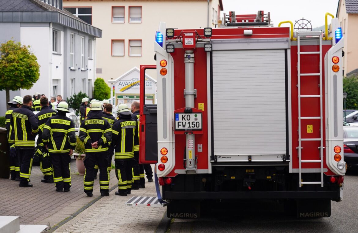 Koblenz | 3. September 2023 | (ww). Heute Morgen ist ein Großaufgebot von Einsatzkräften zu einem Hotelbrand in die Stauseestraße nach Koblenz-Güls alarmiert worden. Mehrere Notrufer meldeten gegen kurz vor 10 Uhr einen Brand im Hotel „Avantgarde“ im Stadteil Güls. Die Integrierte Leitstelle Koblenz alarmierte daraufhin Einsatzkräfte der Berufsfeuerwehr Koblenz und die Einheiten der Freiwilligen Feuerwehren Güls und Rübenach. Zusätzlich wurden Einsatzkräfte des Rettungs- und Sanitätsdienstes hinzualamiert. Bereits vor Eintreffen der Feuerwehr wurde ein Großteil der Gäste evakuiert. Das Feuer in der Küche eines Appartments konnte schnell gelöscht werden. Zwei Personen wurde durch Rauchvergiftungen leicht verletzt, mussten jedoch nicht ins Krankenhaus gebracht werden. Insgesamt waren rund 50 Einsatzkräfte vor Ort. Zur Brandursache, zu den Folgen und der Schadenshöhe kann derzeit noch keine Aussage getroffen werden.