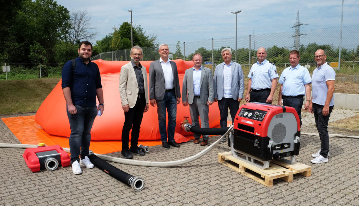 Neuwied | 22. Juli 2022 | (cm). Nach einem Großbrand auf dem Betriebsgelände der Firma ASAS hat sich das Unternehmen jetzt unter anderem mit einer großzügigen Spende bei der Freiwilligen Feuerwehr Neuwied bedankt. Ein orangefarbener Faltbehälter mit einem Fassungsvermögen von 15.000 Litern, eine leistungsstarke moderne Pumpe und ein vielseitig einsetzbarer Schwimmsaugkorb gehören von nun an zum Equipment der Feuerwehr. Doch damit nicht genug: ASAS und die Stadtverwaltung Neuwied haben zudem eine Vereinbarung getroffen, laut der das Unternehmen der Neuwieder Feuerwehr Gelände für Übungszwecke zur Verfügung stellt. Die Rettungskräfte hätten hervorragende Arbeit geleistet, betonte ASAS-Inhaber Safa Bayor Yavuz bei der Spendenübergabe. Für deren außerordentliche Unterstützung sei man sehr dankbar. Außerdem habe die Feuerwehr auch nach der Brandnacht dem Unternehmen mit Rat und Tat zur Seite gestanden. Der große Brand war im März vergangenen Jahres ausgebrochen.
