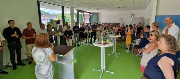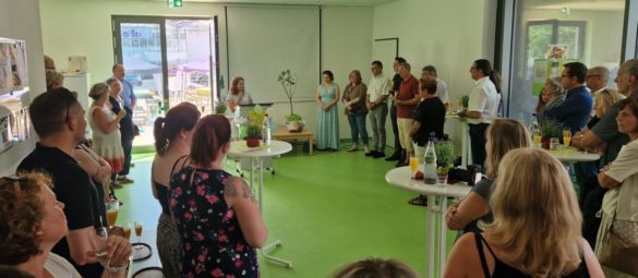 Um 12.30 Uhr begann der offizielle Teil mit der Einweihung des neuesten Anbaus an die Kindertagesstätte. Rund 2,4 Millionen kostete die Erweiterung um zwei Gruppen, eine (Industrie-) Küche und eine Mensa – alle Redner blickten auf diese außergewöhnliche Maßnahme zurück, die letztendlich sämtlichen Beteiligten ein starkes Nervenkostüm abverlangte. Kurz nach der eigentlichen Fertigstellung war der Anbau nämlich schon wieder Sanierungsfall: ein Artikel im Centbereich – die mangelhafte Abdichtung zweier Außenwasserhähne – verursachte einen kapitalen Wasser- und Schimmelschaden, der das Kitaleben deutlich einschränkte und die Freude über den neuen Anbau mit dem Vorteil der eigenen Küche deutlich trübte bzw. verzögerte. Und wenn schon einmal der Wurm drin ist, sorgt auch noch die während der Pandemiediskussion nachgerüstete Belüftungsanlage bis heute für Probleme und funktioniert bislang auch nur im Altbau. Doch trotz aller Schwierigkeiten lobten alle Beteiligten die Gestaltung des jetzt sechsgruppigen Kindergartens für nun 116 Kinder – die meisten zum Jubiläum mitgebrachten Geschenke helfen, dass jahrelang angeschaffte und den Wasserschaden verlorene Material in den Gruppen zu ersetzen.
