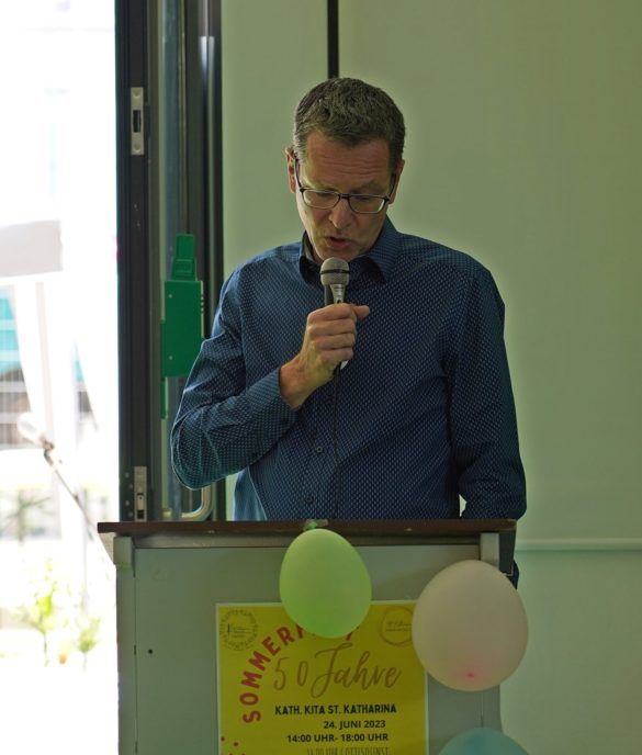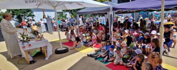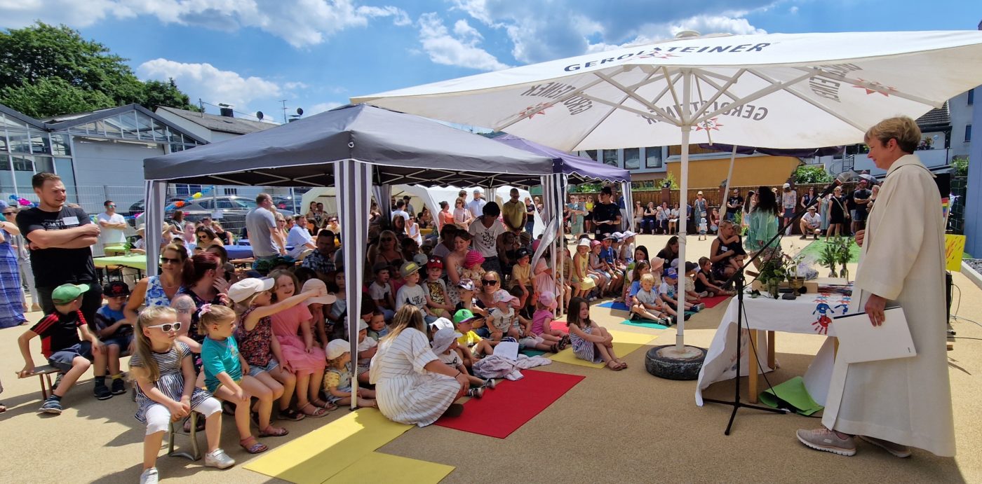 Fachbach | 24. Juni 2023 | (ww). Jede Menge GrĂĽnde zum Feiern gab es in der „katholischen Kindertagesstätte St. Katharina Fachbach-Nievern-Miellen“ – kurz: im Fachbacher Kindergarten – am vergangenen Samstag. Der 50. Geburtstag der Einrichtung konnte gleichzeitig mit der offiziellen Einweihung des Anbaus und dem Sommerfest endlich gebĂĽhrend gefeiert werden und auch der Förderverein blickt schon auf 25 Jahre Engagement fĂĽr den Nachwuchs der drei Lahngemeinden zurĂĽck. Alles in allem also ausreichend GrĂĽnde fĂĽr ein rauschendes Fest bei hochsommerlichen Temperaturen.