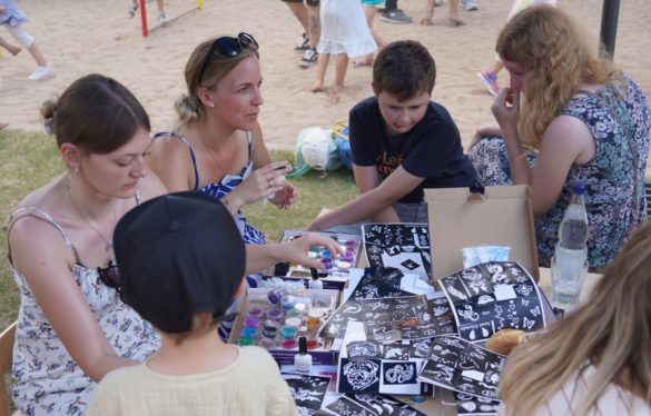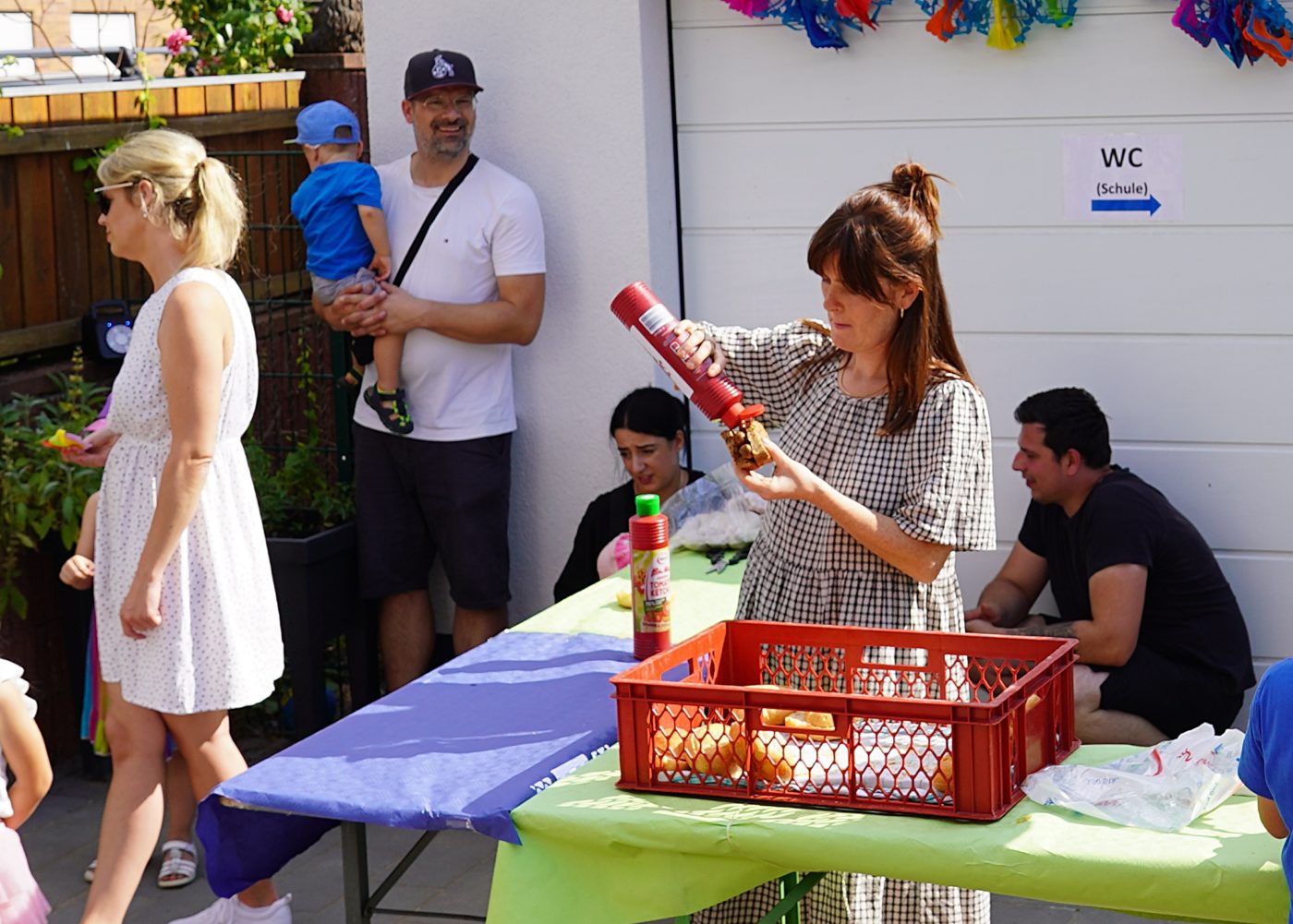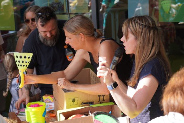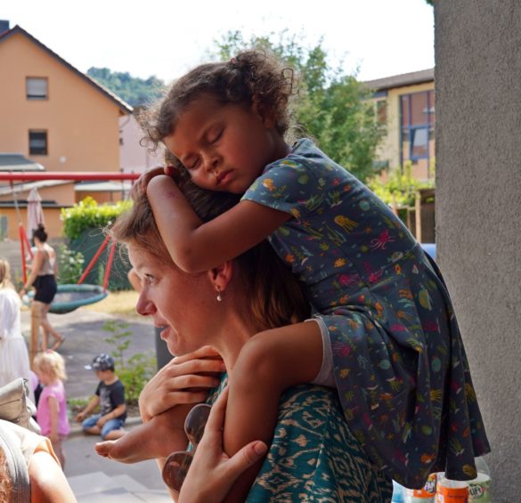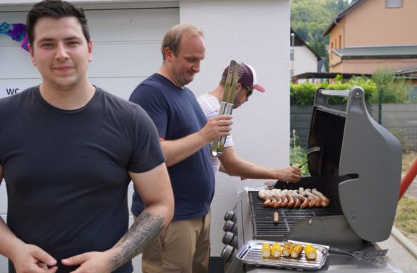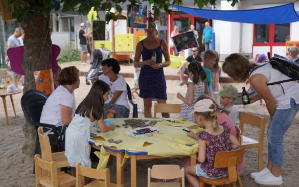 Nach dem Jubiläumsgottesdienst und einigen VorfĂĽhrungen der Gruppen lockte das Sommerfest erfreulich viele Besucher bis in den späten Nachmittag in die Einrichtung am Dieter-Görg-Platz, wo sich so manches ehemalige Kindergartenkind auf einem der Gruppenbilder aus fĂĽnf Jahrzehnten oder der Präsentation der Bilder aus dem Kindergartenalltag wiederfand. Doch nicht nur Fotodokumente gaben Aufschluss ĂĽber die frĂĽher anvertrauten: alle drei bisherigen Leiterinnen der Einrichtungen wussten so manche Geschichte zu dem einen oder anderen „Ehemaligen“ zu erzählen – unter anderem auch zum aktuellen OrtsbĂĽrgermeister Thorsten Heibel, dessen Karriere-Grundstein ja schlieĂźlich auch im Fachbacher Kindergarten gelegt wurde.
