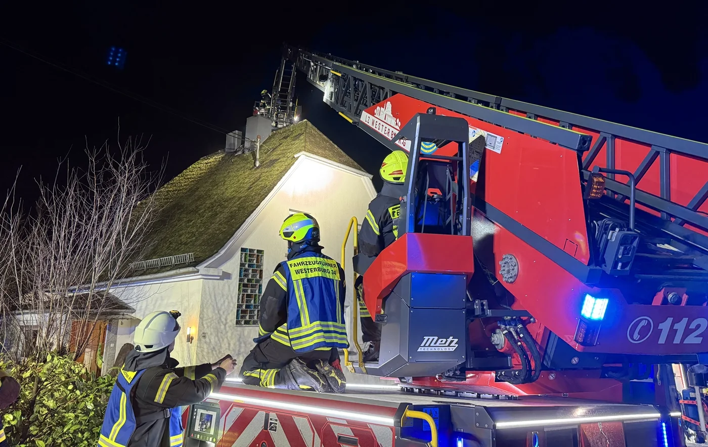 Enspel | 22. Dezember 2025 | (ww). Am Samstagabend gegen um 17.30 Uhr wurden die Feuerwehren aus Enspel, Stockum-Püschen, Bellingen, Langenhahn und Nistertal zu einem Kaminbrand in Enspel alarmiert. Vor Ort stellten die ersteintreffenden Einsatzkräfte fest, dass aus dem Kamin eines Einfamilienhauses bereits Flammen schlugen. Unverzüglich wurde die Drehleiter der Feuerwehr Westerburg nachalarmiert, um einen Zugang zum Schornstein vom Dach aus sicherstellen zu können.