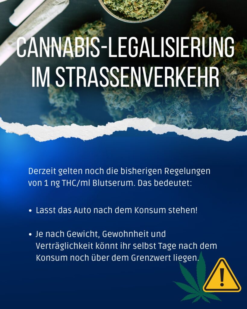 „Das Fahren unter dem Einfluss von Cannabis (und selbstverständlich allen anderen berauschenden Mitteln) belibt weiterhin strafbar – lasst das Auto dann also lieber stehen“, warnt das Polizeipräsidium Koblenz.