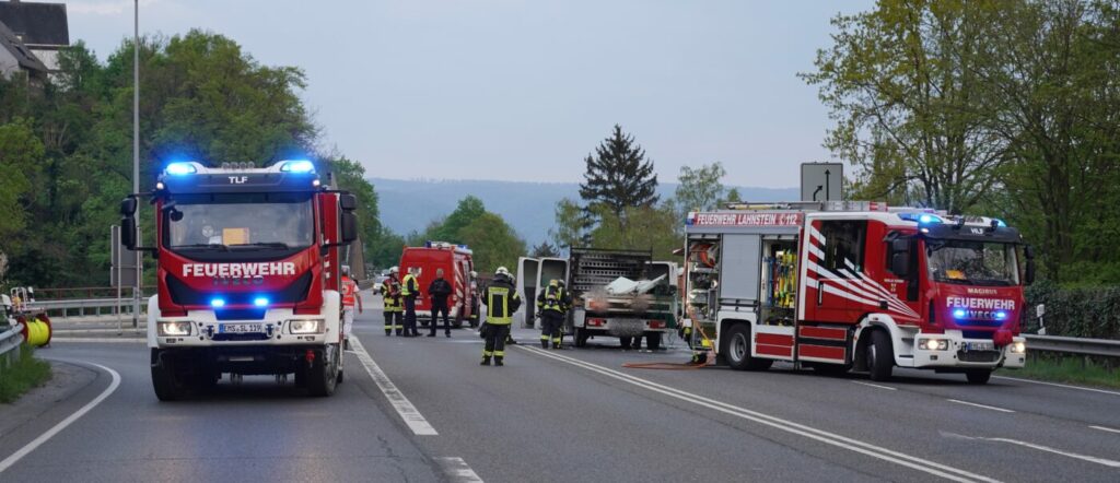 Kleinlasterbrand macht B42 bei Lahnstein-Mitte dicht