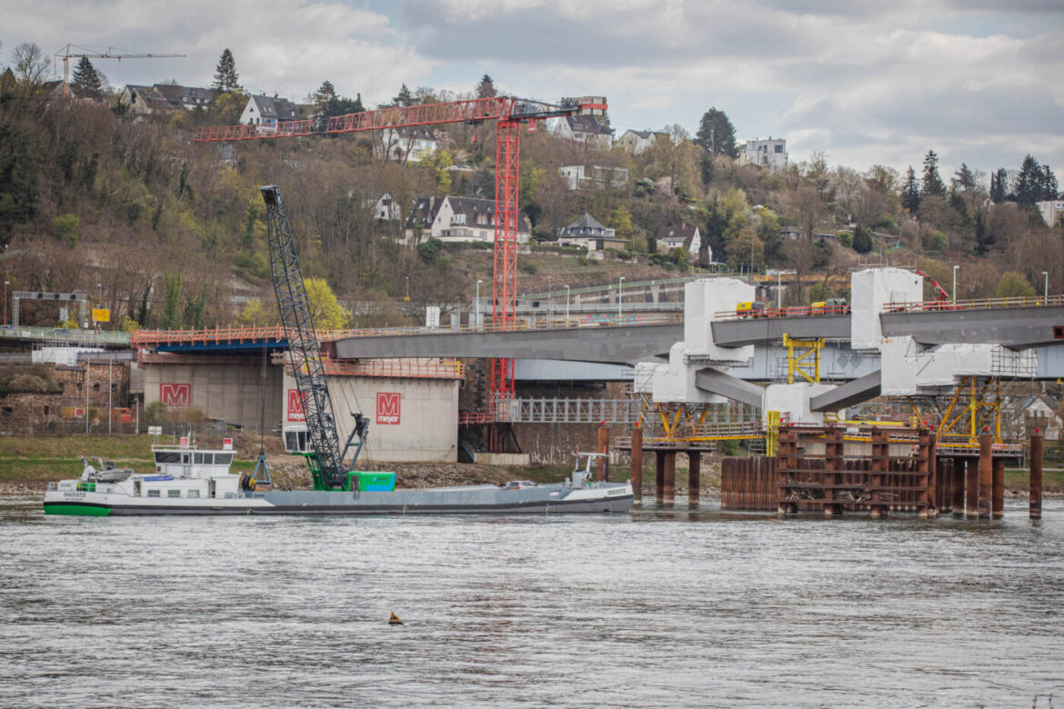 Koblenz | 5. April 2026 | (ww). Bei Baggerarbeiten im Rhein im Bereich der Baustelle für den Neubau Pfaffendorfer Brücke wurde am Donnerstag ein Blindgänger gefunden (56aktuell berichtete). Wie nun bestätigt wurde handelt es sich dabei um eine 500-Kilogramm-Bombe aus dem Zweiten Weltkrieg mit einem intakten und einem abgebrochenen Zünder. Diese wurde bei den Baggerarbeiten im Abrau auf dem Baggerschiff entdeckt. Das Baggerschiff wurde noch im Laufe des Donnerstagabends zur Sicherung in die Moselschleuse in Koblenz gefahren und wird dort bewacht, auch darüber berichtete 56aktuell. Laut Kampfmittelräumdienst Rheinland-Pfalz darf die Bombe vom Schiff nicht umgelagert werden. Die Entschärfung muss demnach auf dem Schiff erfolgen.