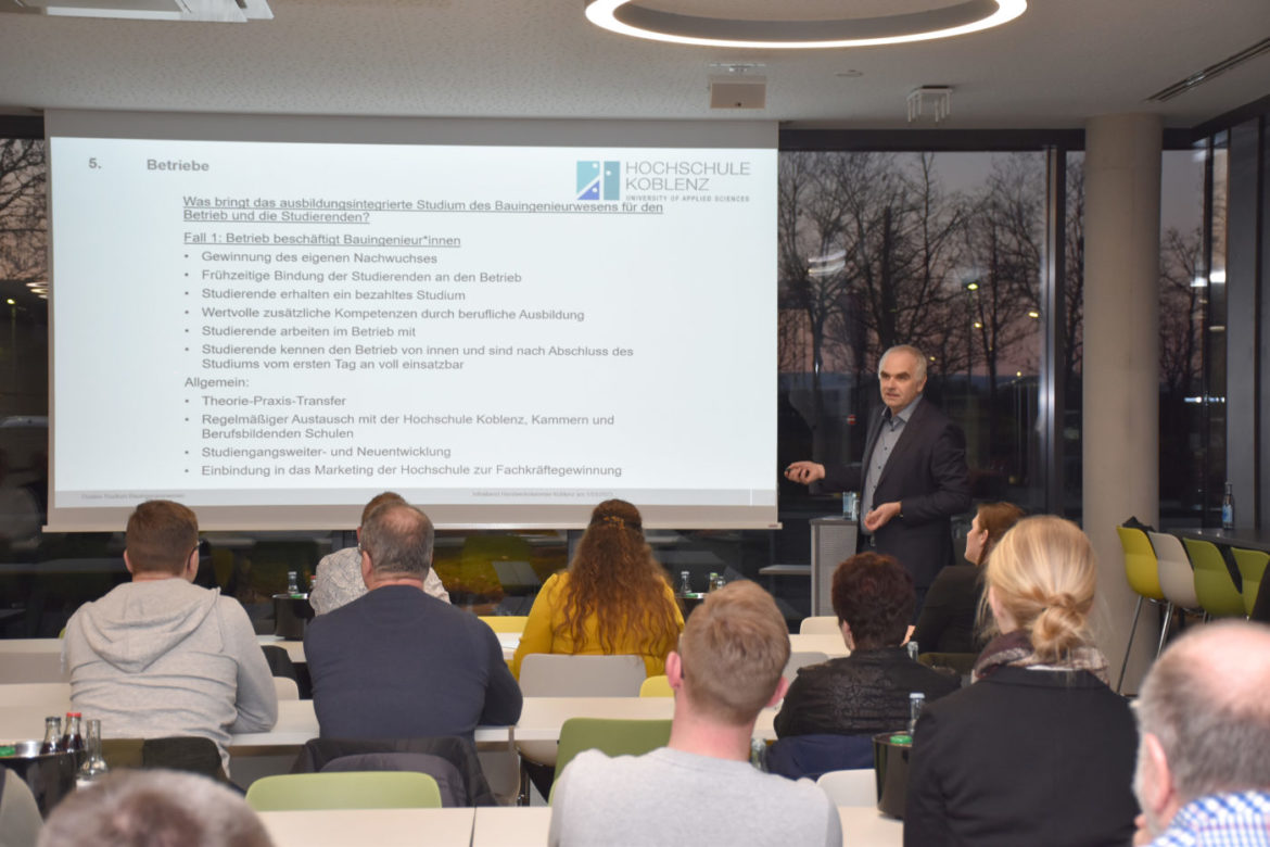 Der weg hierfür könnte zum Beispiel ein duales Studium sein, welches ein fundiertes theoretisches Hochschulstudium mit intensiver Berufspraxis im Handwerk verbindet. Ähnlich wie die Studierenden profitieren auch die teilnehmenden Ausbildungsbetriebe: Zum einen von den sehr gut ausgebildeten Fachkräften – insbesondere für Führungspositionen – und zum anderen vom Werbeeffekt durch das Hochschulmarketing und dem erweiterten Kreis potenzieller Auszubildender in der Zukunft. Die Möglichkeit eines dualen Studiums existiert bereits seit vielen Jahren. In Zusammenarbeit zwischen der Handwerkskammer (HwK), der Hochschule und dem Handwerksbetrieb wird es den Studierenden ermöglicht, sich akademisch und praktisch zu bilden. Das Hochschulangebot und welche Berufe dual studiert werden können, wird dabei in erster Linie von den Unternehmen und der Nachfrage im Handwerk beeinflusst. Der Student und die Studentin von heute könnten morgen genau diejenigen sein, die das Handwerk in die Zukunft tragen. Das duale Studium sei ein Ansatz, um auch jene für das Handwerk zu begeistern, die sonst vielleicht eine rein akademische Ausbildung – am Handwerk vorbei – angestrebt hätten, so Ralf Hellrich, Hauptgeschäftsführer der HwK Koblenz. Studieninteressierte und Betriebe können sich bei der HwK Koblenz informieren, deren Ausbildungsberatung vor und während des ausbildungsintegrierten dualen Studiums im Handwerk beratend und unterstützend zur Seite steht. Ein duales Studium sei für viele junge Menschen ein idealer Einstieg in das berufliche Leben. Der Studiengang ‚Bauingenieurwesen, dual‘ in Kooperation zwischen der HwK Koblenz und der Hochschule Koblenz ist hier keine Ausnahme. Die Kombination von Berufsausbildung und Studium ermöglicht es den Absolventen, mit dem ausbildungsintegrierten dualen Studium sowohl einen Gesellen- als auch einen Hochschulabschluss zu erwerben.