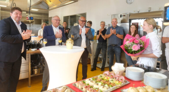 Koblenz | 12. August 2025 | (ww). Nach mehrwöchigen Dreharbeiten, Monaten voller eiserner Verschwiegenheit und spannender Ausstrahlungsabende stand am vergangenen Mittwochabend endlich fest: Rowena Redwanz hat die Sat1-Show „Das große Backen – Die Profis“ gewonnen! Mit ihr fieberten während der zurückliegenden Folgen nicht nur unzählige Freunde, Familienmitglieder und Follower auf Instagram, sondern auch ihre Kollegen der Handwerkskammer (HwK) Koblenz. Sie alle drückten der sympathischen, zurückhaltenden Handwerksmeisterin die Daumen und ließen sie am Tag nach dem Finale hochleben. In Rowenas zweitem „Wohnzimmer“, der Konditorei im Zentrum für Ernährung und Gesundheit der HwK Koblenz, wurde die Siegerin vom HwK-Präsidenten Kurt Krautscheid, HwK-Hauptgeschäftsführer Ralf Hellrich, Geschäftsführer Bernd Hammes, Mitgliedern der Vollversammlung, Geschäftsführung und vielen Kollegen mit einer Feierstunde und gemeinsamem Brunch geehrt.