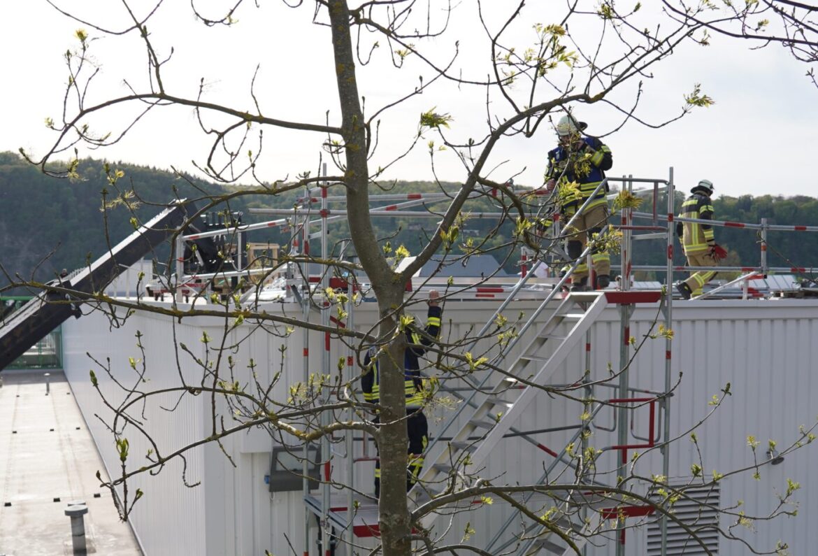 Lahnstein | 13. April 2024 | (ww). Gegen 17 Uhr rückte die Lahnsteiner Feuerwehr zu einem gemeldeten Brand im (oder besser AUF dem) Globus Baumarkt aus. Bei Dacharbeiten war es nach Angaben der eingesetzten Kräfte vor Ort zu einem Feuer gekommen. Dieses war aber bereits vor dem Eintreffen der Feuerwehr durch die Arbeiter selbst gelöscht worden. So musste die Feuerwehr ediglich noch die so genannte Brandnachschau leisten. Dabei wird die Brandstelle und auch das Umfeld auch per Wärmebildkamera genauestens abgesucht, um zu verhindern, dass unentdeckte Glutnester wieder aufflammen.