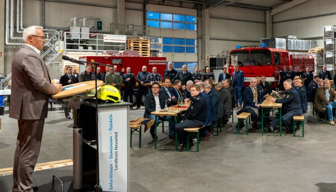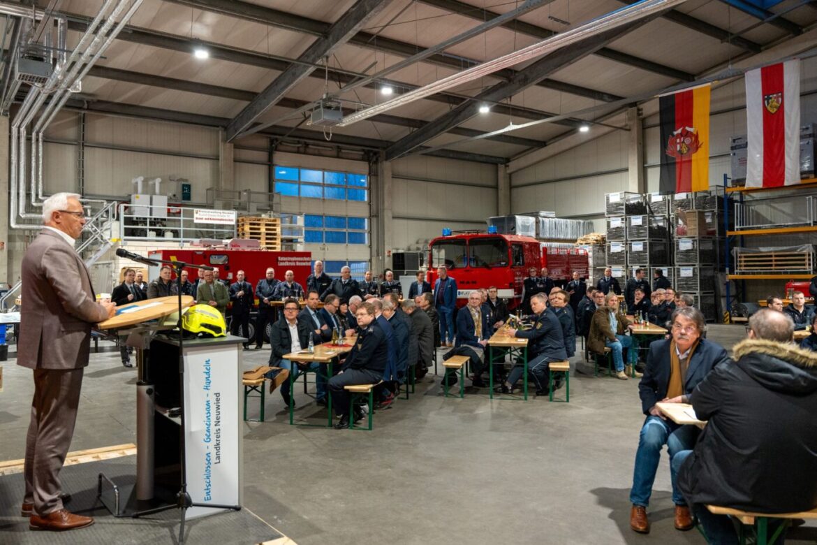 Kreis Neuwied | 24. Januar 2025 | (ww). Mit einer feierlichen Eröffnung hat Landrat Achim Hallerbach das neue Brand- und Katastrophenschutzzentrum (BKS-Zentrum) des Landkreises Neuwied offiziell seiner Bestimmung übergeben. Für den Krisen- und Katastrophenschutz steht nun eine hochmoderne Einrichtung zur Verfügung. Damit ist der Landkreis Neuwied Vorreiter in der Region und setzt Maßstäbe für den Bevölkerungsschutz im nördlichen Rheinland-Pfalz. Das Gebäude, strategisch günstig gelegen in einem Neuwieder Industriegebiet, vereint auf über 900 Quadratmetern Lagerfläche sowie zusätzlichen Verwaltungs- und Einsatzzentralen alle notwendigen Funktionen unter einem Dach. “Dieses Zentrum ist nicht nur ein Bauwerk aus Beton, Stahl und Technik – es ist ein sichtbares Symbol für Sicherheit, Verantwortung und Zusammenhalt in unserem Landkreis – gerade dann, wenn es um alles geht: Um den Schutz unserer Bürgerinnen und Bürger“, betonte Landrat Achim Hallerbach in seiner Ansprache.