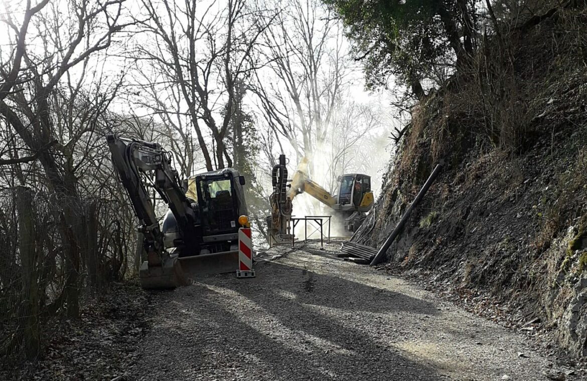 Derzeit erfolgt die werkseitige Herstellung der Stege (das sind die beiden geplanten Brücken, die Red). Vor Ort erfolgt im Moment schwerpunktmäßig die Herstellung der Widerlager und Stützen für die Stege. Die Gründung erfolgt mittels Mikropfählen bis in den anstehenden Felsen.