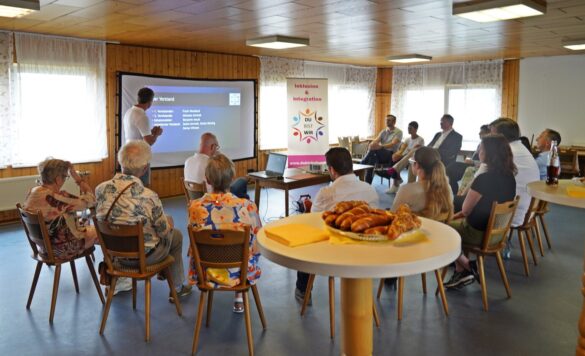 Eine der Stationen: Der Verein „Du bist wir“ e.V, der von Wirges aus beeinträchtigten Kindern, Jugendlichen und jungen Erwachsenen im Westerwald – und im Rhein-Lahn-Kreis Freizeitaktivitäten anbietet, um eine Integration in der Gesellschaft zu ermöglichen und deren Familien zu entlasten. Das Team um den Vorsitzenden Frank Wendland, Stellvertreterin Michaela Schmidt, Benjamin Meudt, Saskia Schmidt, Stefan Minning und Denise Wilhelm ist seit 2019 aktiv und bietet eine stetig steigende Anzahl von auch mehrtägigen Freizeit-Angeboten bei weiterhin stark steigender Nachfrage. Dabei werden die Teilnehmer von 25 professionellen Pflegekräften betreut. „Die Nachfrage steigt stetig und wir stehen an der Schwelle der Professionalisierung, das heißt, dass der Aufwand mittlerweile im Ehrenamt kaum noch zu stemmen ist“, macht Wendland in seiner Präsentation für den Ministerpräsidenten deutlich. Dieser dankt dem Verein und dem Vorstand für die „wertvolle Arbeit“ und bietet Beratung, Vernetzung und Unterstützung durch die Staatskanzlei bzw. das Land an. Auch bei einer weiteren Herausforderung für den Verein, einer behindertengerechten „Heimat“ mit Versammlungs- und Veranstaltungsräumen für den Verein und seine mittlerweile 300 Mitglieder signalisiert der Ministerpräsident Unterstützung und spontan gab es in der Präsentationsrunde auch von der AWO, dem Eigentümer der bislang genutzten, aber zum Beispiel noch nicht mit behindertengerechten Toiletten ausgestatteten Immobilie, das Signal zur Gesprächsbereitschaft.