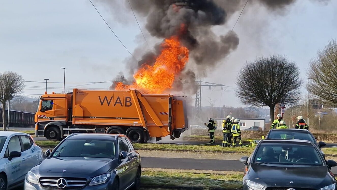Müllwagen brennt am ICE-Bahnhof Montabaur