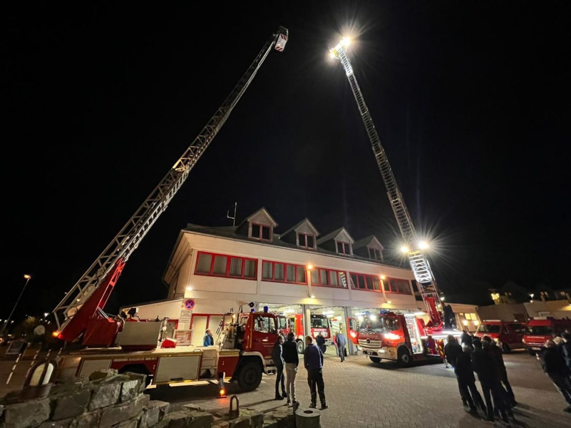 Nastätten | 31. Dezember 2022 | (ms). Bereits kurz vor Weihnachten lag unter dem Weihnachtsbaum der Feuerwehr der Verbandsgemeinde Nastätten das wohl (wortwörtlich) größte Geschenk, das man sich hätte vorstellen können. Denn zum Jahresende durften sich die Kameraden über eine neue Drehleiter freuen, die künftig für noch mehr Sicherheit in der VG Nastätten sorgen soll. Bislang war hier immer eine Drehleiter mit Korb mit einer Nennrettungshöhe von 18 Metern im Einsatz, die nun durch das neue Gerät abgelöst wird. Die angeschaffte Drehleiter verfügt über eine Nennrettungshöhe von nun mehr 23 Metern und sorgt dabei nicht nur durch ihre pure Länge dafür, dass mehr Gebäude erreicht werden können. Auch bedeutet die größere Leiter mehr Möglichkeiten bei der Rettung von Personen für die Einsatzkräfte. Insgesamt kostete die Neuanschaffung rund 786.000 Euro, die das Land mit 227.000 Euro bezuschusst. Am 19.12. machte sich dann eine Gruppe um Wehrleiter Stephan Allmeroth auf den Weg nach Karlsruhe, wo zunächst die Abnahme des neuen Fahrzeuges und an den beiden Folgetagen die Einweisung einiger Drehleitermaschinisten der Einheit Nastätten anstand. Am 21. fuhr das neue Fahrzeug dann bereits auf dem Nastätter Marktplatz vor. Aktuell erfolgt die Einweisung der Feuerwehrkameradinnen und –kameraden auf das neue Gerät. Sobald diese abgeschlossen sind, wird die neue Leiter in Dienst gestellt. Eine offizielle Fahrzeugübergabe folgt zu einem späteren Zeitpunkt.