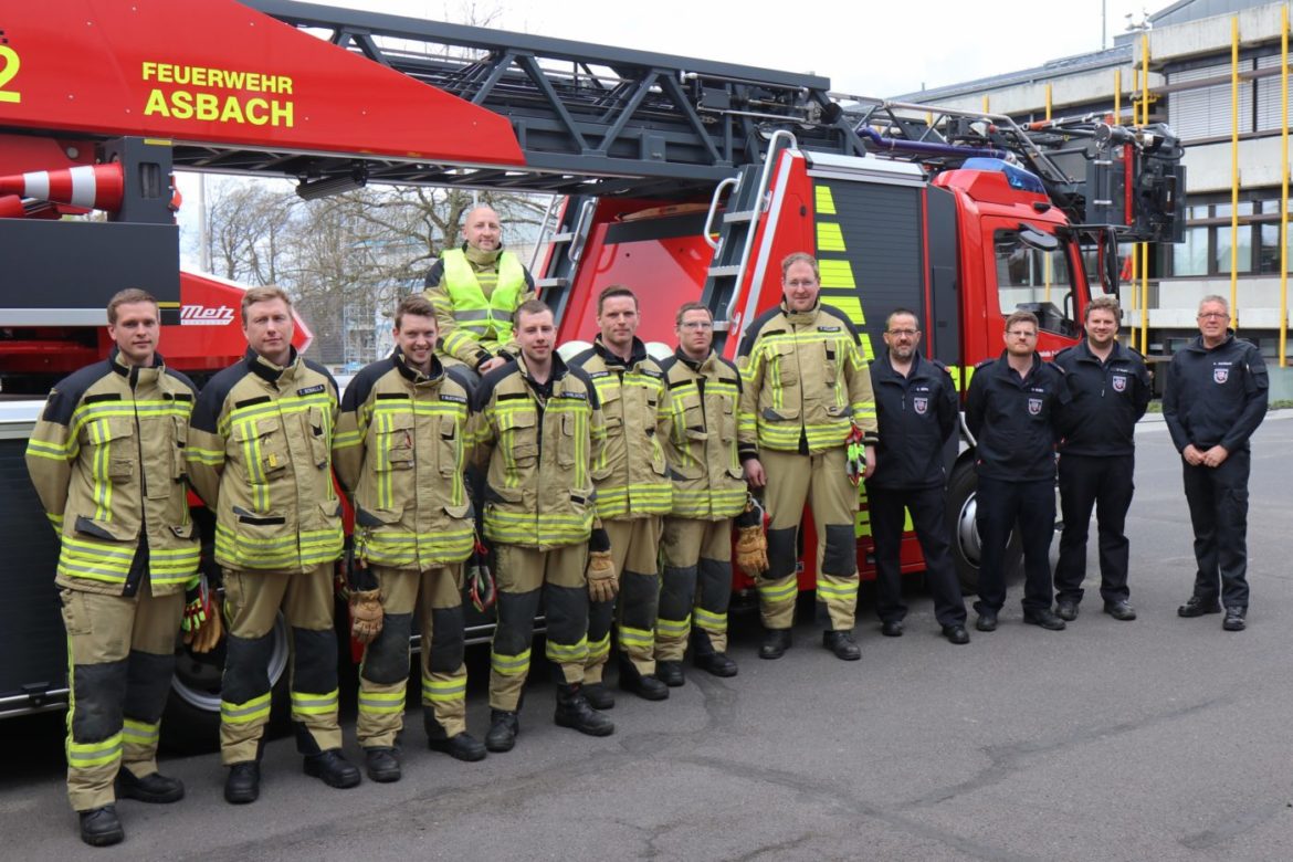 Asbach | 28. April 2023 | (ms). An den vergangenen zwei Wochenenden haben die Feuerwehren der Verbandsgemeinde Asbach neue Drehleiter-Maschinisten ausgebildet. In insgesamt 35 Unterrichtsstunden wurden insgesamt acht Feuerwehrmänner der Einheiten Asbach und Altenhofen in den Grundlagen sowie der Bedienung einer Drehleiter geschult. Die Ausbildung startete am ersten Samstag mit den Grundlagen zum sicheren Betrieb sowie den Unfallverhütungsvorschriften. Ebenfalls gab es einen Exkurs in das Baurecht. Den Schwerpunkt bildete jedoch das Thema Fahrzeugkunde, bei dem unter anderem verschiedene Arten und Typen von Hubrettungsfahrzeugen vorgestellt und deren Besonderheiten und Einsatzgebiete besprochen wurden. Auch die Berechnung der notwendigen Aufstellflächen und Abstände wurde erläutert und an Beispielen berechnet, sowie die Themen Bedienung, Sicherheitseinrichtungen und Notbetrieb einer Drehleiter behandelt. Beendet wurde das erste Ausbildungswochenende dann mit einer praktischen Übung, in der die Teilnehmer in die Positionen des Fahrzeugführers, Maschinisten und Truppmann aufgeteilt wurden.