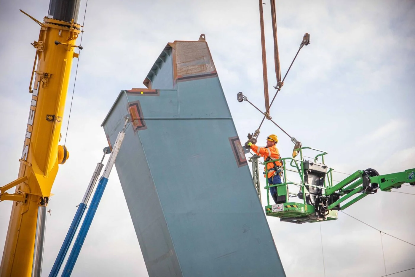 Neue Geh-Radwegbrücke: tonnenschwere Pfeiler eingehoben