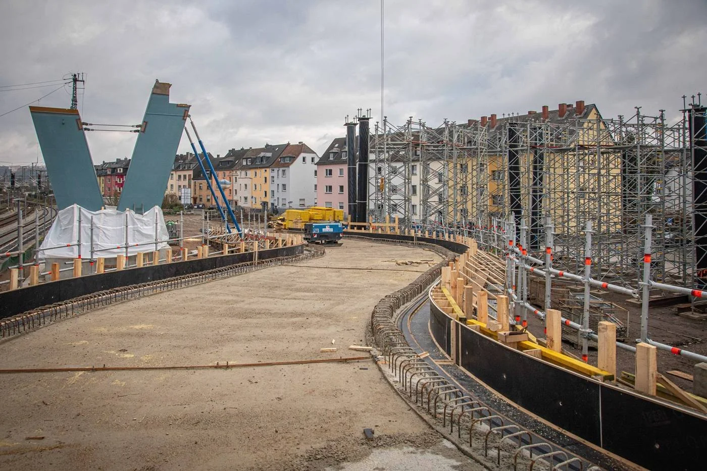 Im Baufeld auf der Rauentaler Seite werden unterdessen im Dezember die Stützen der der Rampe errichtet. Im März 2026 sollen dann die vorbereitenden Arbeiten für den Einhub des Überbaus beginnen, der sich zukünftig über zwölf Gleise der Deutschen Bahn erstreckt. Die notwendigen Sperrpausen der Bahnstrecke für den Einhub des Überbaus selbst, mussten bereits im Februar 2023 angemeldet werden, um fristgerecht in der Betriebsplanung der Bahn berücksichtigt werden zu können.