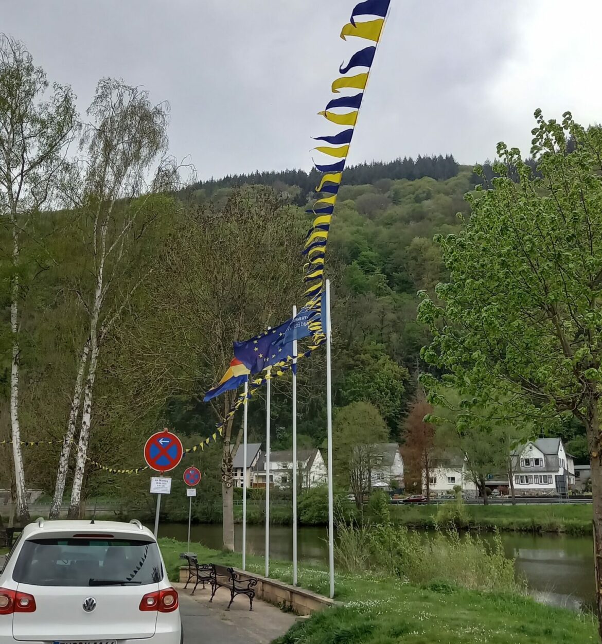 Bild: Die Fähnchen fürs Nieverner Frühlingsfest wehen schon! (Foto: Ortsgemeinde Nievern)