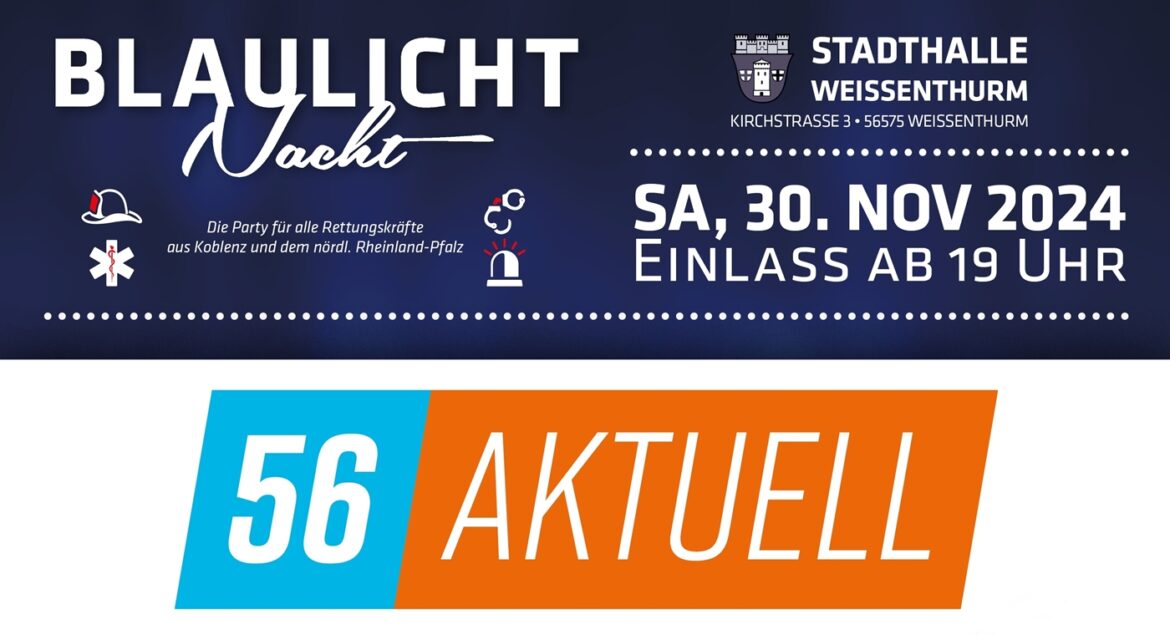 Weißenthurm | 11.11. 2024 | (ww). Am 30. November startet die diesjährige Auflage der Blaulichtnacht. Als Blaulichtnacht Koblenz ist die Dankeschön-Party für alle Rettungskräfte aus Koblenz und dem nördlichen Rheinland-Pfalz 2015 an den Start gegangen. Im vergangenen Jahr erfolgte der Umzug in die Stadthalle Weißenthurm. Das Original. Seid dabei, bei der bereits siebten Blaulichtnacht Koblenz am 30. November ab 19 Uhr in der großen Stadthalle von Weißenthurm. Achtung: in diesem Jahr mit Bus-Shuttle-Service noch partyfreundlicher zu erreichen!