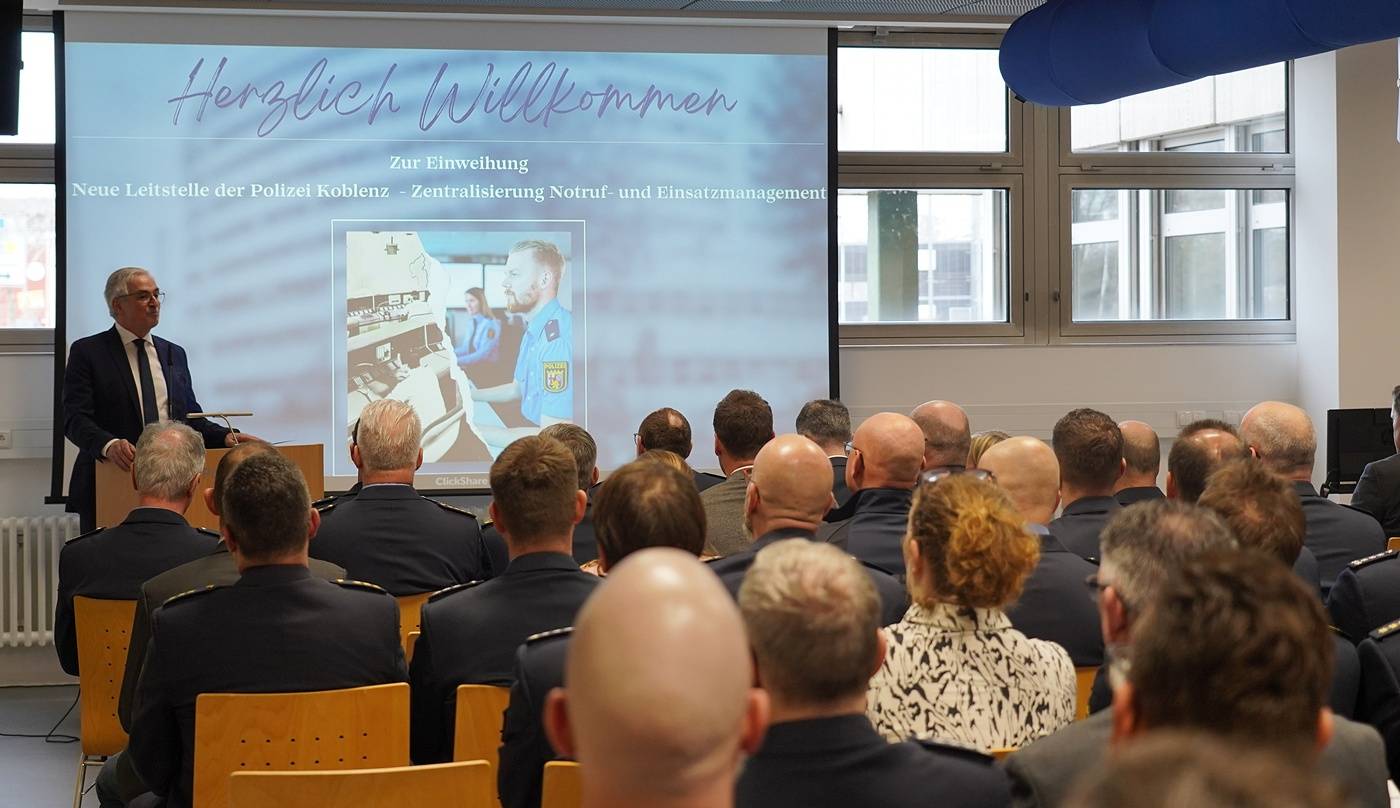 „Mit der neuen Leitstelle beginnt für das Polizeipräsidium Koblenz eine neue Ära. Wer im Bereich des Polizeipräsidiums Koblenz künftig die 110 wählt, richtet sein Hilfeersuchen an eine zentrale Leitstelle. Die örtlichen Polizeidienststellen nehmen keine Notrufe mehr entgegen, bleiben jedoch unverändert verantwortlich für die Einsatzbewältigung“, so Polizeipräsident Jürgen Süs. Die technischen und baulichen Herausforderungen wurden in enger Abstimmung mit den Anforderungen des Polizeipräsidiums Koblenz geplant und realisiert. Bestehende Abläufe wurden geprüft, angepasst und erweitert.