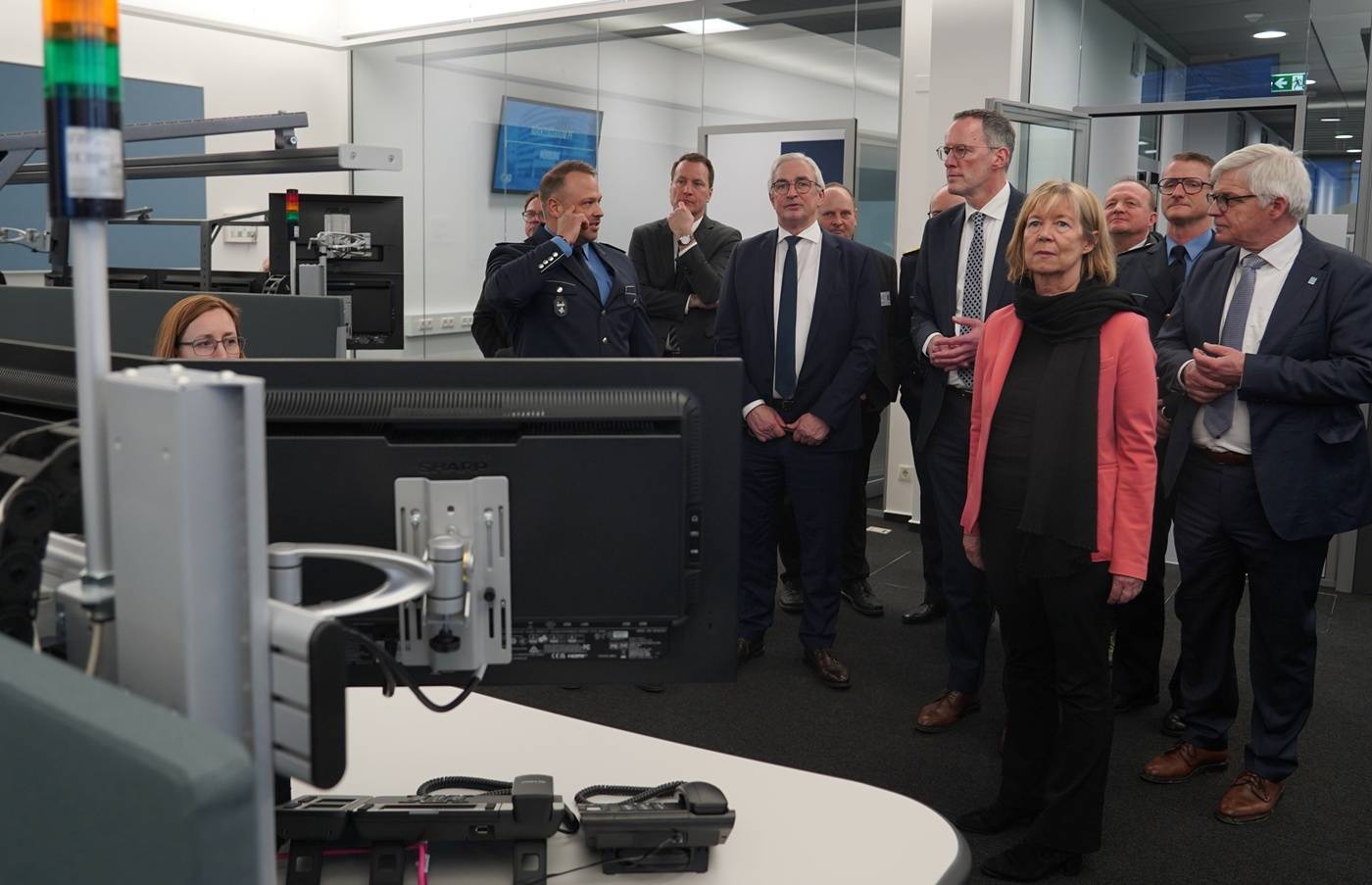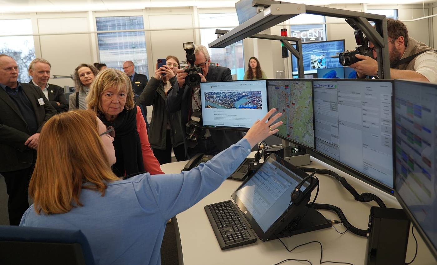 „In Koblenz ist eine hochmoderne Führungszentrale auf rund 1.200 Quadratmetern entstanden, es wurden rund neun Millionen Euro investiert. Die neue Leitstelle vereint moderne Arbeitsatmosphäre mit leistungsstarker technischer Infrastruktur. So wurden alleine unter dem Boden und in den Decken 21 Kilometer Kabel verlegt“, erklärte Finanz- und Bauministerin Doris Ahnen beim Besuch in Koblenz.