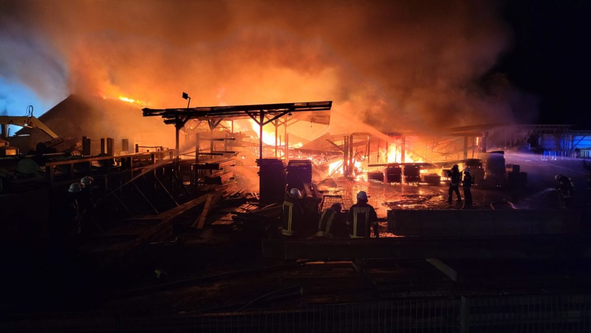 Rennerod | 9. November 2022 | (ww). Aus bisher ungeklärter Ursache hat sich ein Brand innerhalb einer Lagerhalle entwickelt und griff nach und nach auf verschiedene Gebäude des Komplexes über. Teile der Anlage standen in Vollbrand Die Freiwilligen Feuerwehren aus dem oberen Westerwald waren mit insgesamt 166 Einsatzkräften bis gegen 3 Uhr Uhr mit Löscharbeiten beschäftigt. Der Gesamtschaden beläuft sich nach Angaben des Eigentümers auf 1,8 – 2 Millionen Euro. Die Ermittlungen dauern an.