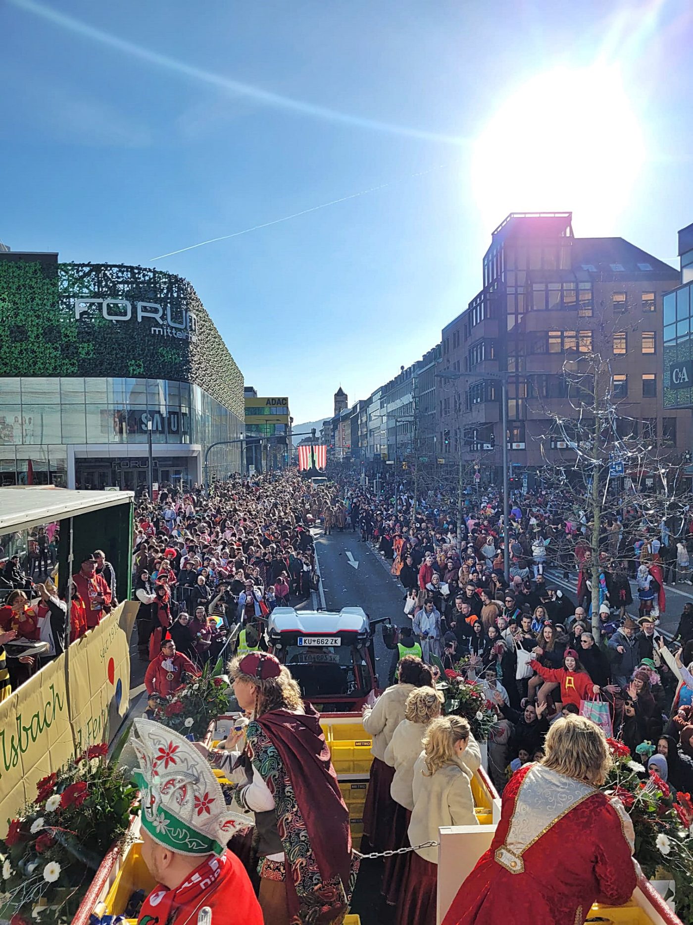 Kowelenz | 20. Februar 2023 | (ww). Ein Bild sagt mehr als tausend Worte! Trotzdem gibt es ein paar dazu: nach der zweimaligen coronabedingten Absage der Session, beziehungsweise sogar des Sessionsabbruchs im vergangenen Jahr starteten Prinz Sven und Confluentia Lisa mit Verspätung in ihre Session mit den KG Rheinfreunde Neuendorf als Koblenzer Tollitätenpaar. Dafür wurden sie heute mit einem Zug mit tollem Wetter und Rekord-Besucherzahlen belohnt – und unter anderem diesem sagenhaften Aus- bzw. Anblick: